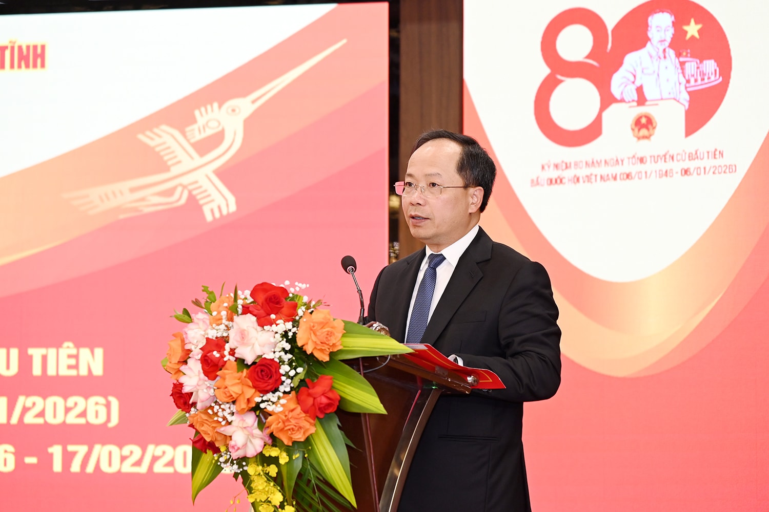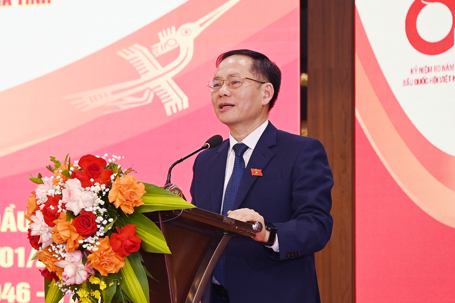 Trình bày diễn văn tại buổi lễ, Phó Trưởng đoàn phụ trách Đoàn ĐBQH tỉnh Trần Đình Gia đã ôn lại truyền thống vẻ vang 80 năm của Quốc hội Việt Nam; quá trình xây dựng, trưởng thành của Đoàn ĐBQH tỉnh và HĐND các cấp tỉnh Hà Tĩnh. Đồng chí khẳng định, 80 năm qua, cùng với sự trưởng thành của Quốc hội Việt Nam, Đoàn ĐBQH và HĐND tỉnh Hà Tĩnh không ngừng đổi mới, nâng cao chất lượng hoạt động, phát huy vai trò là cầu nối tin cậy giữa Đảng, Nhà nước với Nhân dân; góp phần quan trọng vào sự nghiệp cách mạng của Đảng và sự phát triển của quê hương, đất nước.
