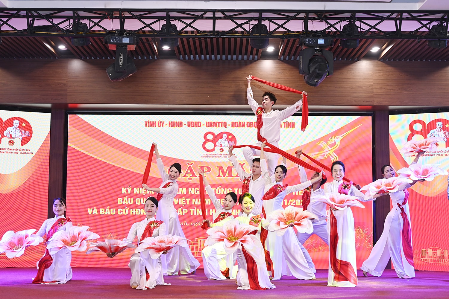 Mở đầu chương trình, đại biểu thưởng thức chương trình văn nghệ với các tiết mục ca ngợi Đảng, Bác Hồ và Quốc hội Việt Nam; đồng thời theo dõi phim tài liệu “Đoàn ĐBQH và HĐND tỉnh – 80 năm một chặng đường phát triển”.