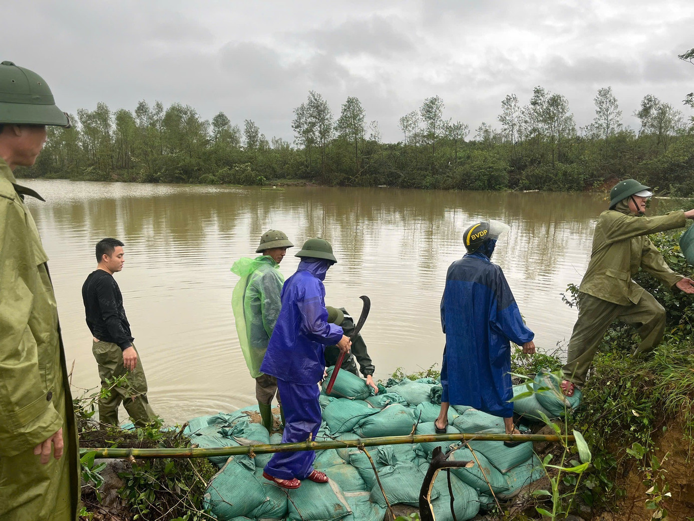 Đặc biệt tại phường Vũng Áng, mưa lớn đã khiến bờ hồ Cơn Trè (phường Vũng Áng) xuất hiện khu vực sạt lở và thấm nước, tiềm ẩn nguy cơ mất an toàn cho khu vực dân cư hạ du. Ngay sau khi nắm thông tin, các đồng chí thường trực Đảng ủy HĐND lãnh đạo UBND, UBMTTQ phường đã trực tiếp xuống hiện trường, cùng lực lượng Công an, Quân sự kiểm tra, chỉ đạo khắc phục sự cố.