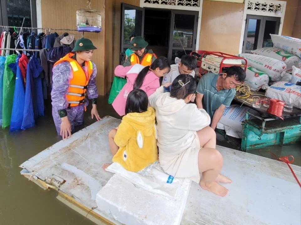 Ngành chức năng hỗ trợ di dời người dân ở vùng ngập lụt đến vị trí an toàn để tránh ảnh hưởng do mưa lũ.