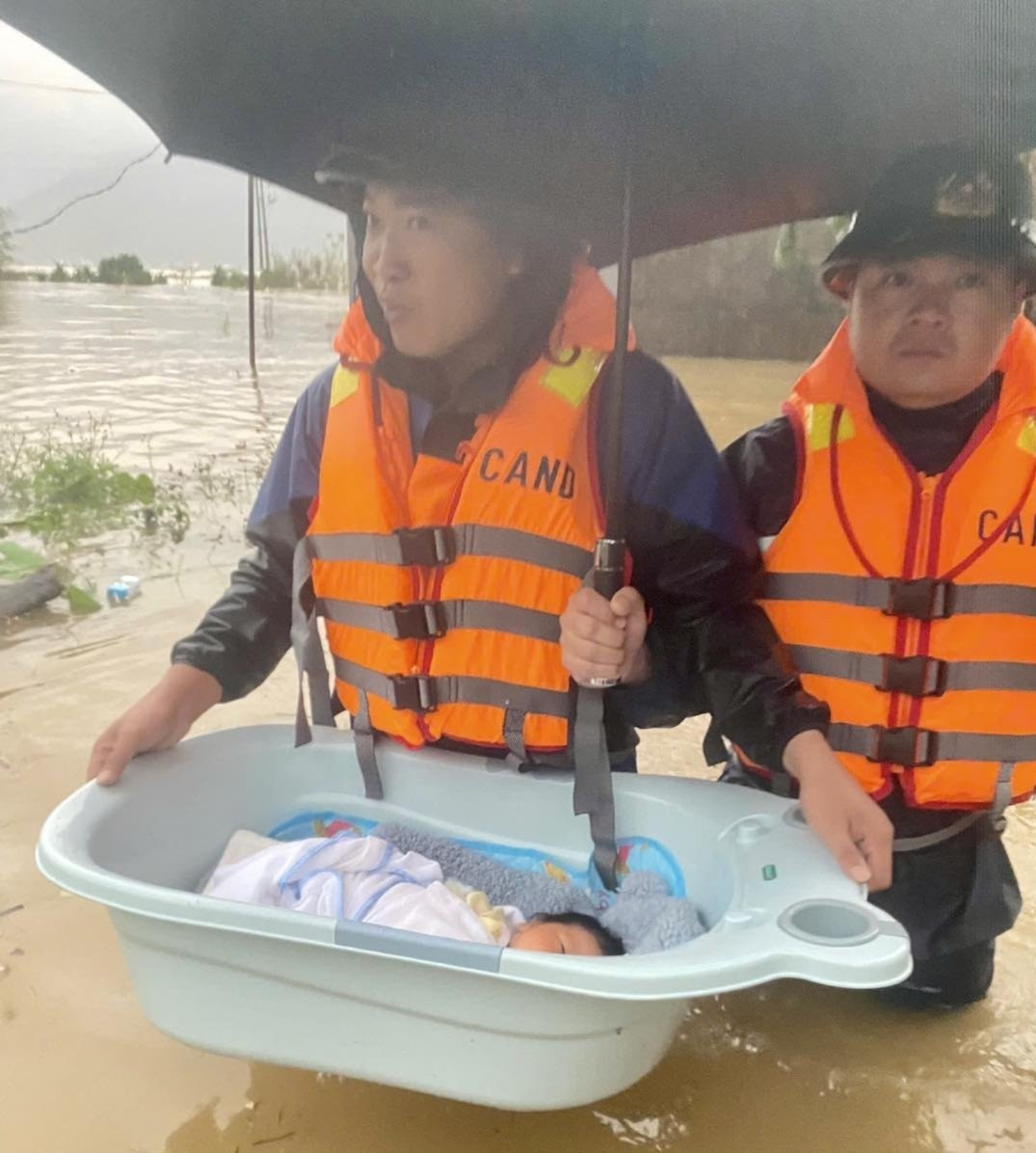 Đặc biệt, lực lượng Công an phường đã kịp thời hỗ trợ đưa một trẻ sơ sinh 6 tháng tuổi cùng gia đình ra khỏi khu vực ngập sâu, đảm bảo an toàn tuyệt đối