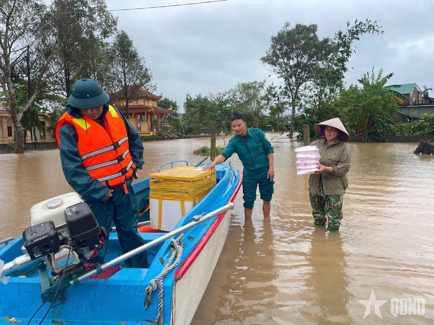 Mặc dù mưa lớn và nước chảy xiết, nhưng các lực lượng tại chỗ vẫn bám nắm tại những khu vực ngập sâu; dùng thuyền, xuồng, bè tạm để tiếp cận các hộ dân bị cô lập, vận chuyển lương thực, nước uống, thuốc men, áo phao và các nhu yếu phẩm đến tận tay bà con với quyết tâm không để người dân nào chịu đói, rét.