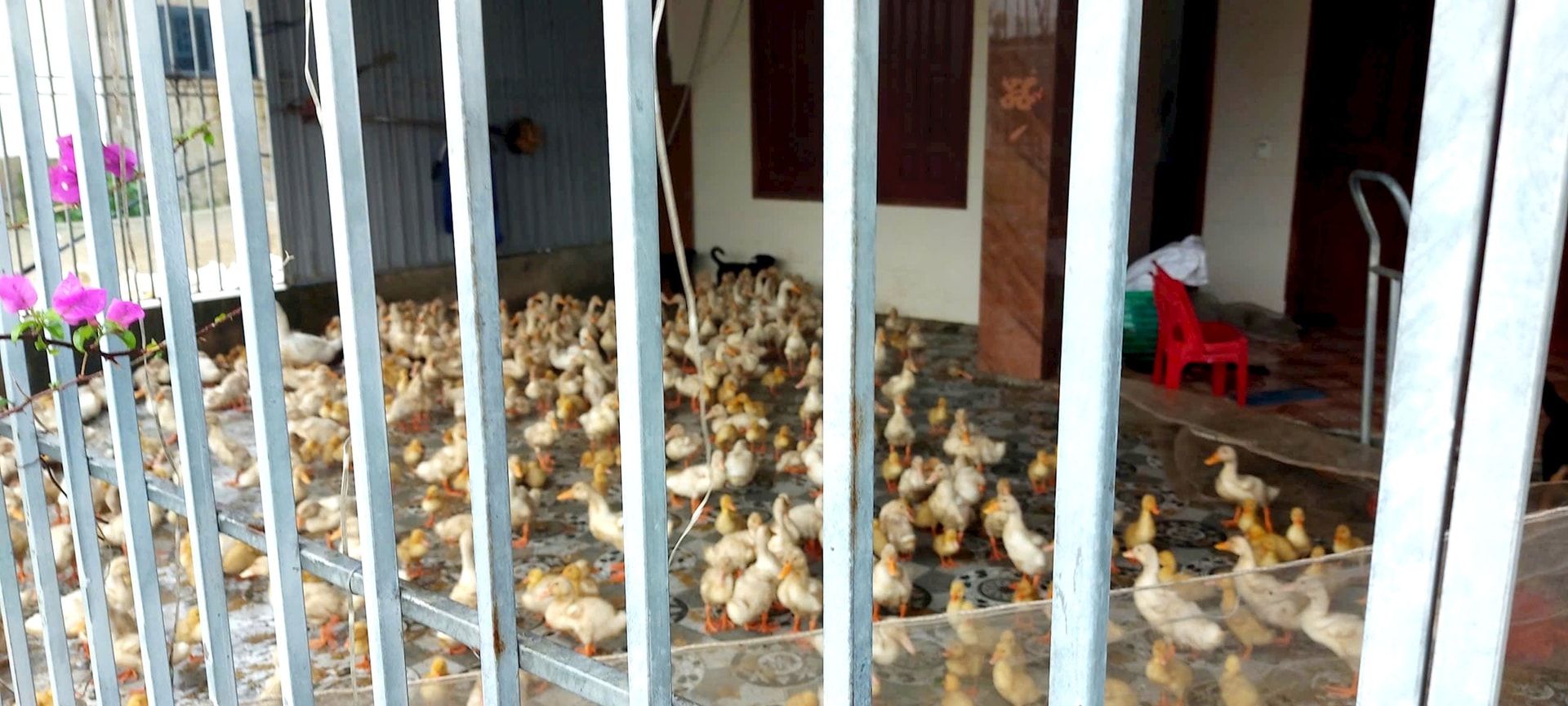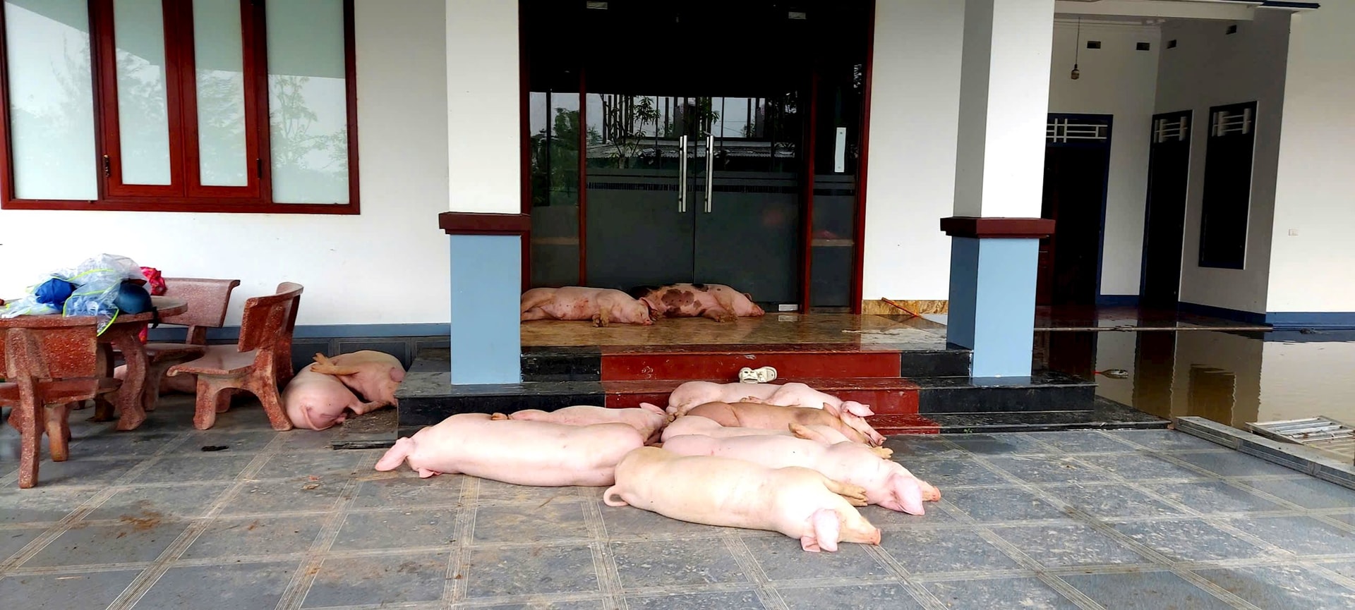 Vật nuôi được người dân đưa lên sân để tránh thiệt hại.