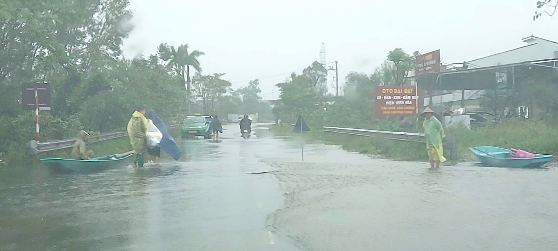 Khu vực cầu Hói Trẻn nước ngập cao, có đoạn lên tới 1m.