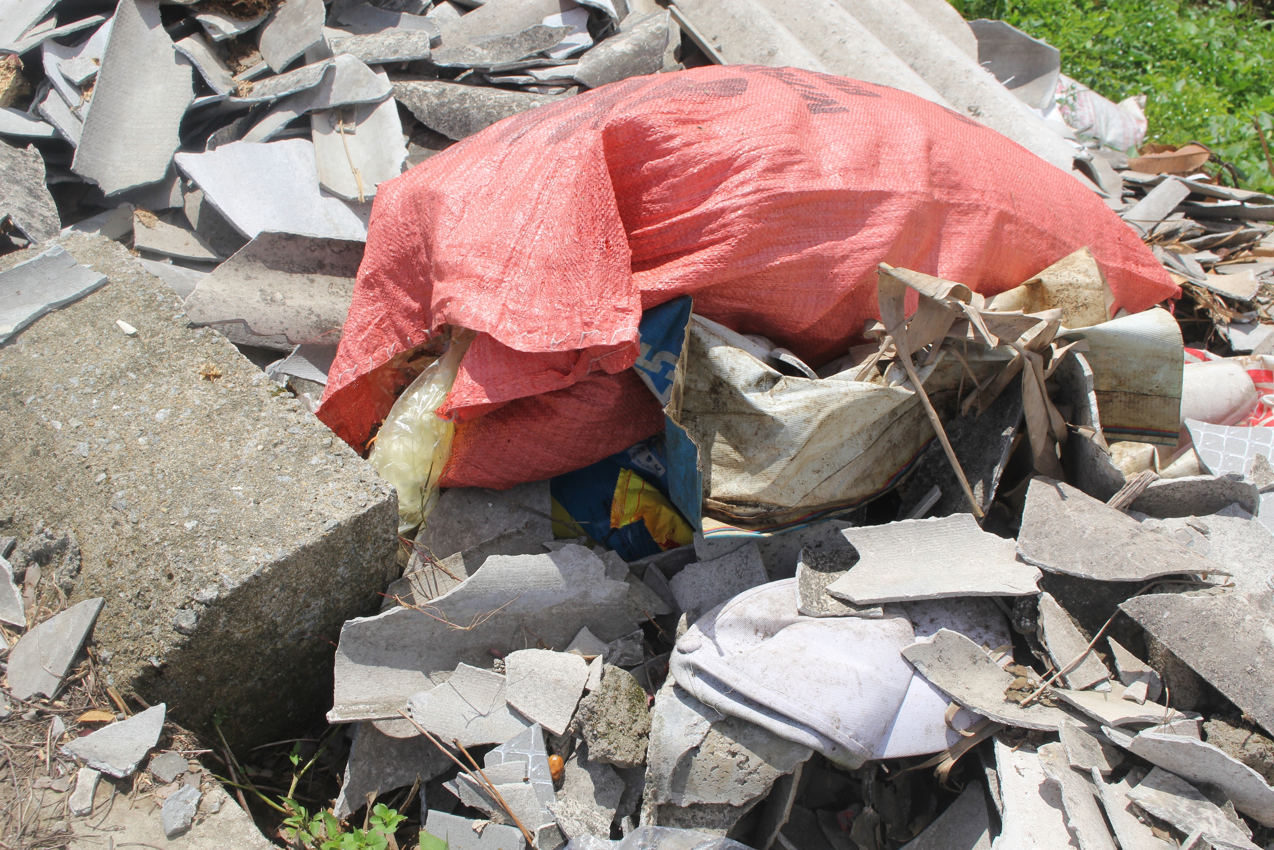 Tuyến đường trở nên nhếch nhác với ngổn ngang những gạch, ngói được vứt bừa bãi.