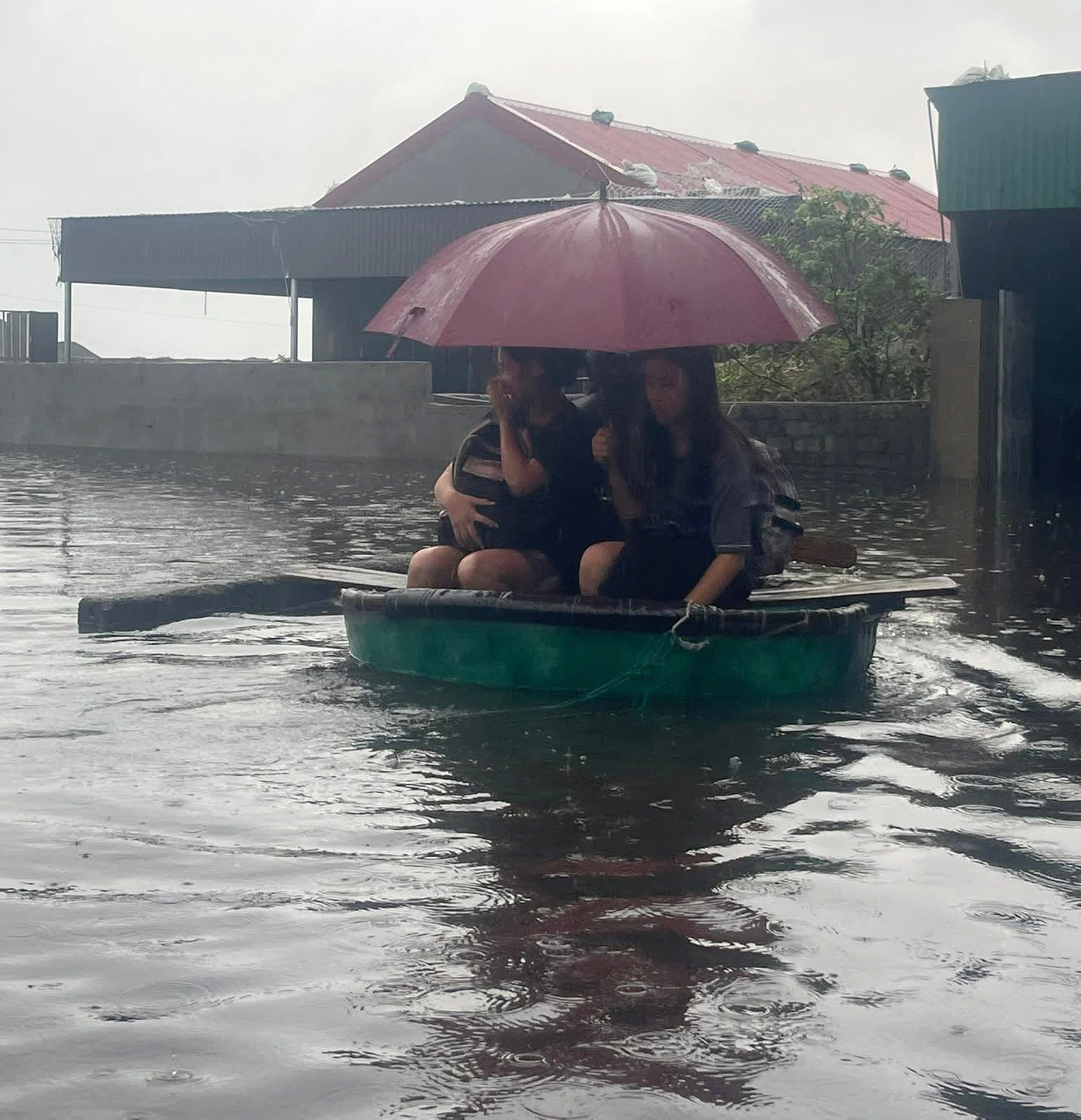Người dân tại một số khu vực trũng thấp di chuyển bằng thuyền thúng