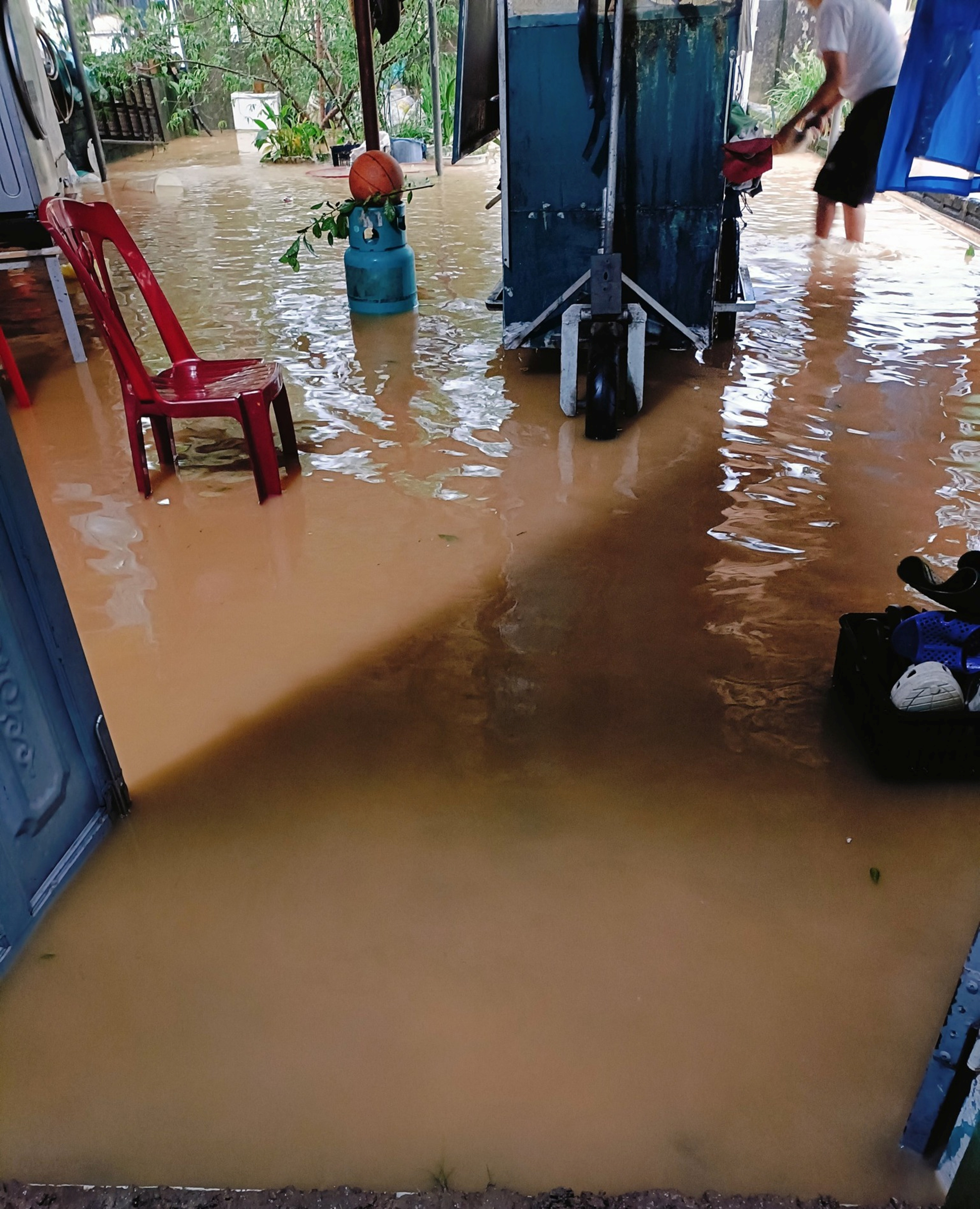 * Đến sáng 31-10, do mưa lớn kéo dài cộng với triều cường dâng nhanh khiến nhiều hộ dân bị ngập nước.