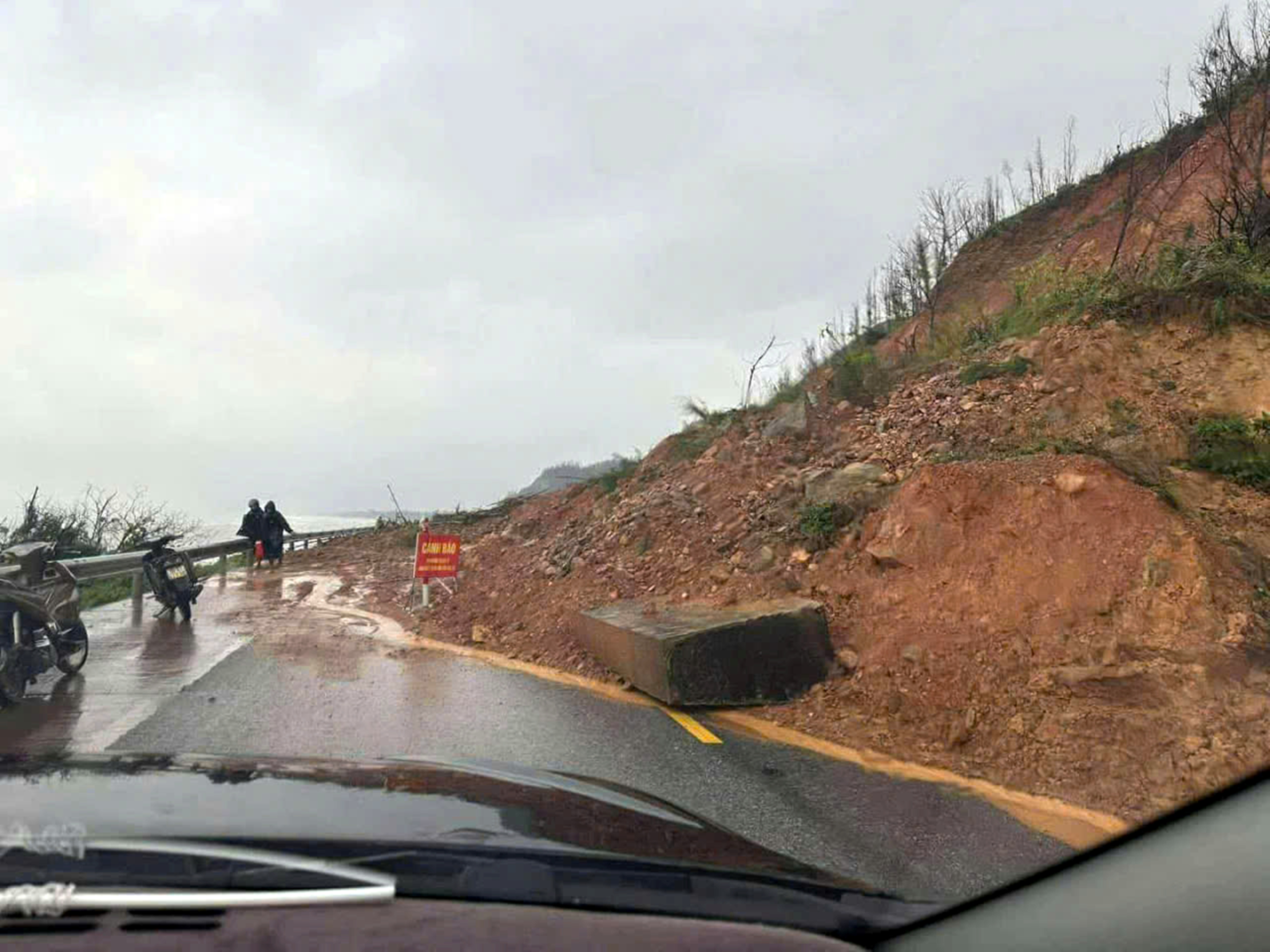 Sáng 31-10, lãnh đạo Đồn Biên phòng Kỳ Khang (thuộc Ban Chỉ huy Bộ đội Biên phòng tỉnh Hà Tĩnh) cho biết, do ảnh hưởng mưa lớn khiến hàng trăm mét khối đất đá trên vách núi bị sạt lở nghiêm trọng, đổ tràn xuống mặt đường ven biển nối xã Kỳ Khang và phường Hải Ninh, kéo dài khoảng 30m.