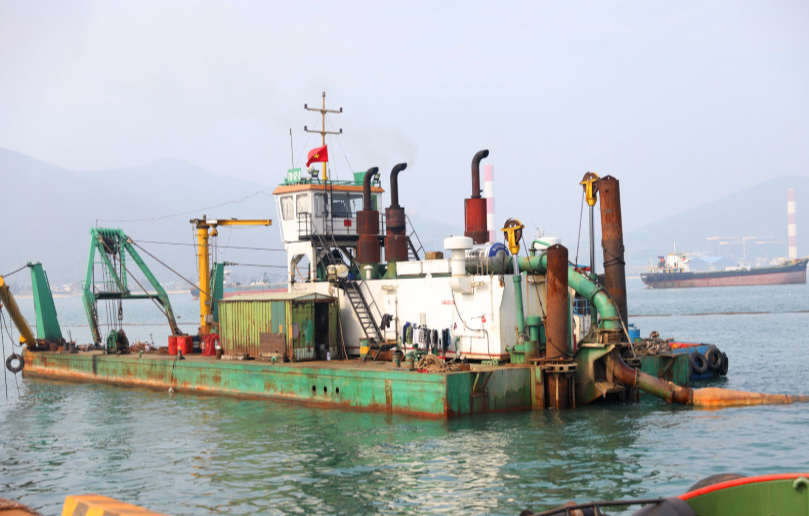 Doanh nghiệp nạo vét luồng cảng để tàu thuyền dễ ra vào.