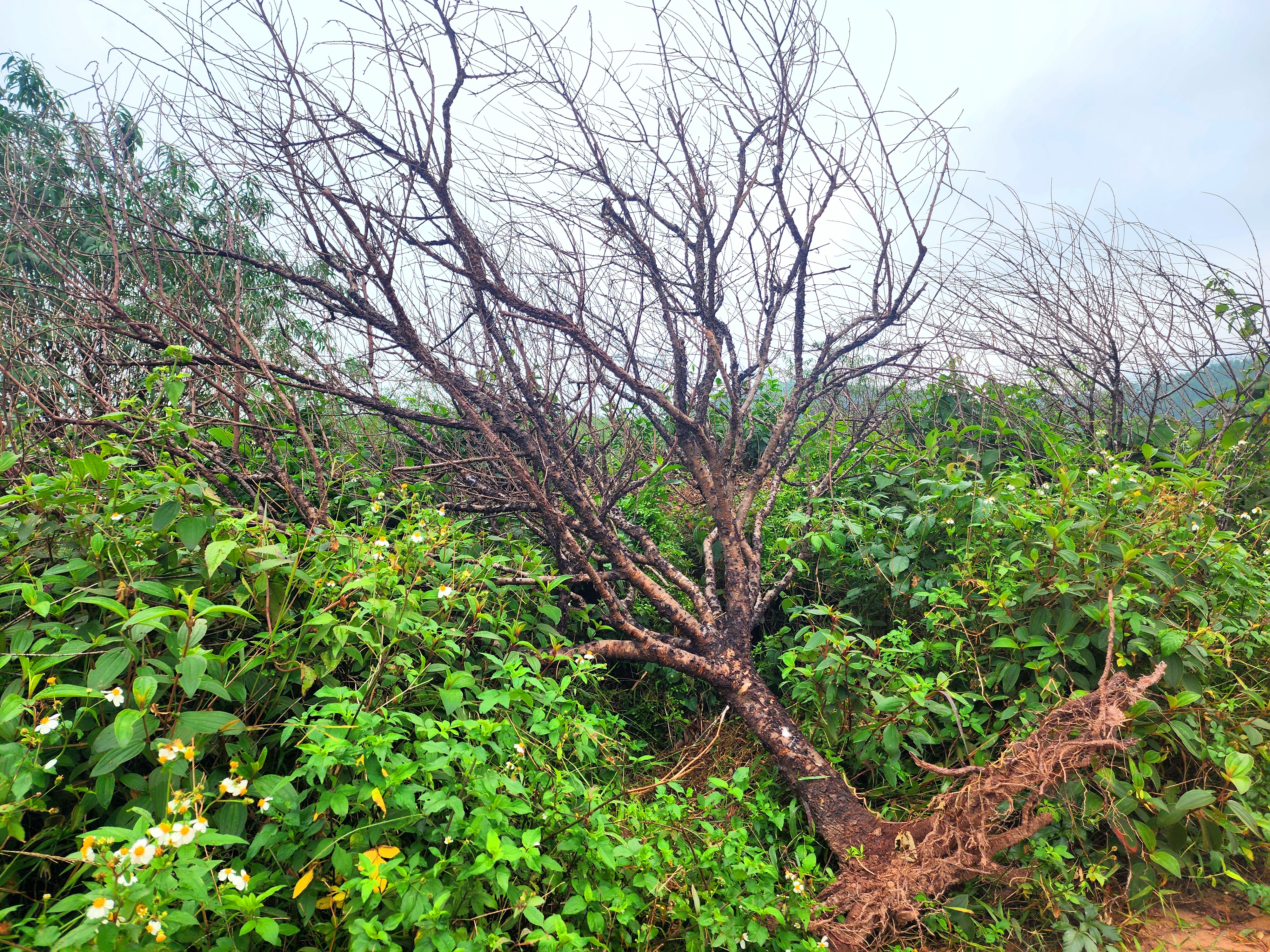 Hàng loạt cây đào phai đổ ngã, héo vàng, chết khô tại nhiều vườn đào phai cảnh ở xã Toàn Lưu