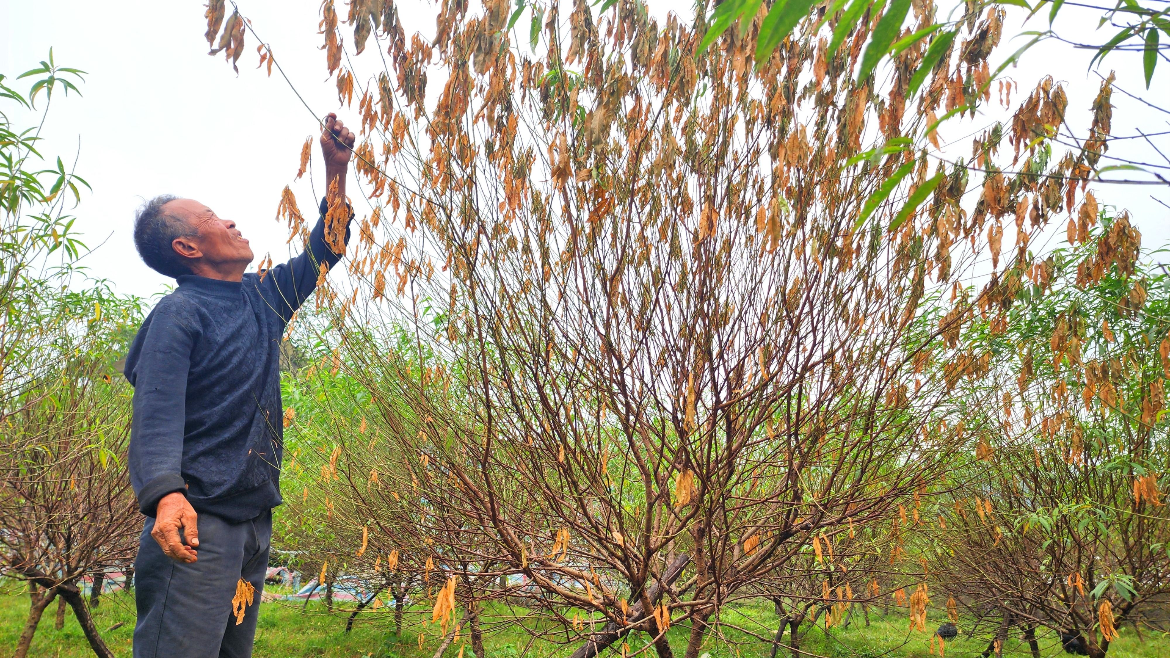 Thời gian qua, người dân đã có nhiều biện pháp chăm sóc, khắc phục cứu cây nhưng không có kết quả. Hiện nay, số lượng cây đào bị hư hỏng đang lan rộng, khiến người dân mất trắng.