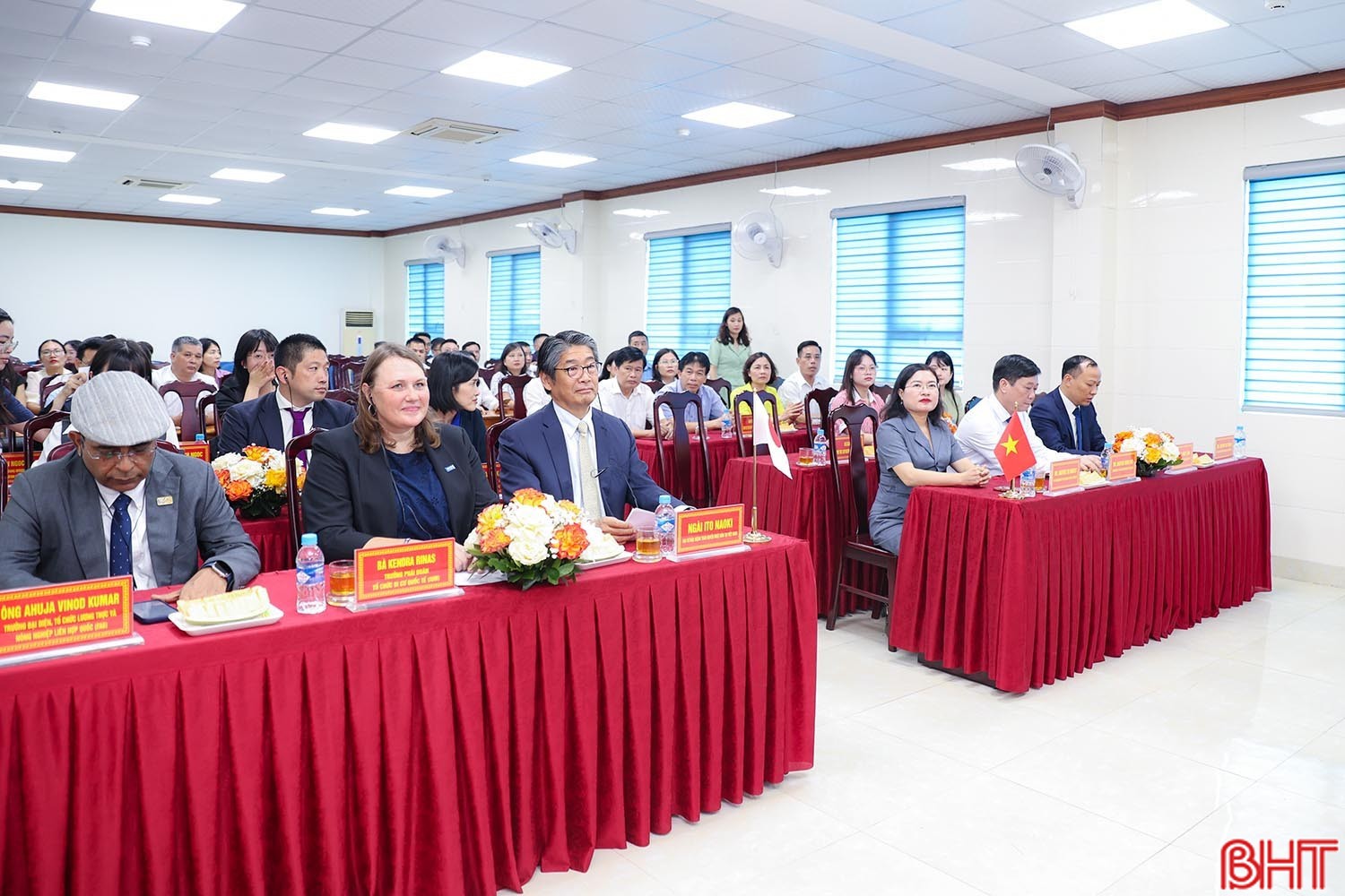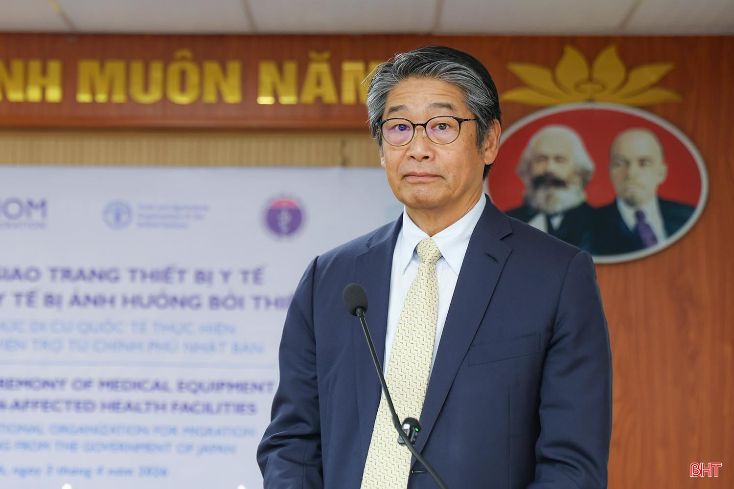 Trong khuôn khổ chuyến thăm và làm việc tại Hà Tĩnh, đoàn công tác Đại sứ quán Nhật Bản tại Việt Nam, phái đoàn Tổ chức Di cư Quốc tế (IOM), Tổ chức Lương thực và Nông nghiệp Liên hợp quốc (FAO) tại Việt Nam do ngài Ito Naoki - Đại sứ Đặc mệnh toàn quyền Nhật Bản tại Việt Nam dẫn đầu đã tới dự lễ bàn giao trang thiết bị cho các cơ sở y tế bị ảnh hưởng bởi thiên tai do tổ chức quốc tế thực hiện với nguồn viện trợ từ Chính phủ Nhật Bản.