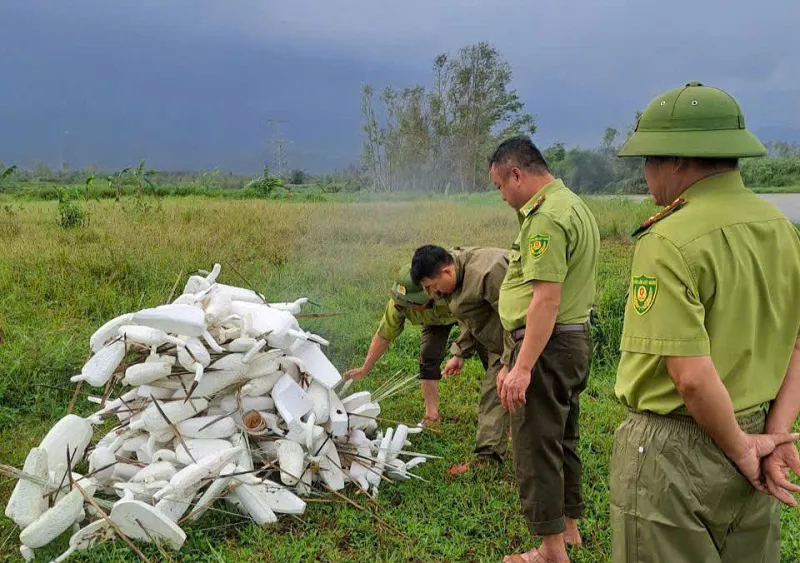 Các lực lượng chức năng ở tỉnh Hà Tĩnh tập trung tháo dỡ, tiêu hủy các công cụ, thiết bị người dân dùng để săn bắt trái phép chim di cư trong mùa mưa bão.