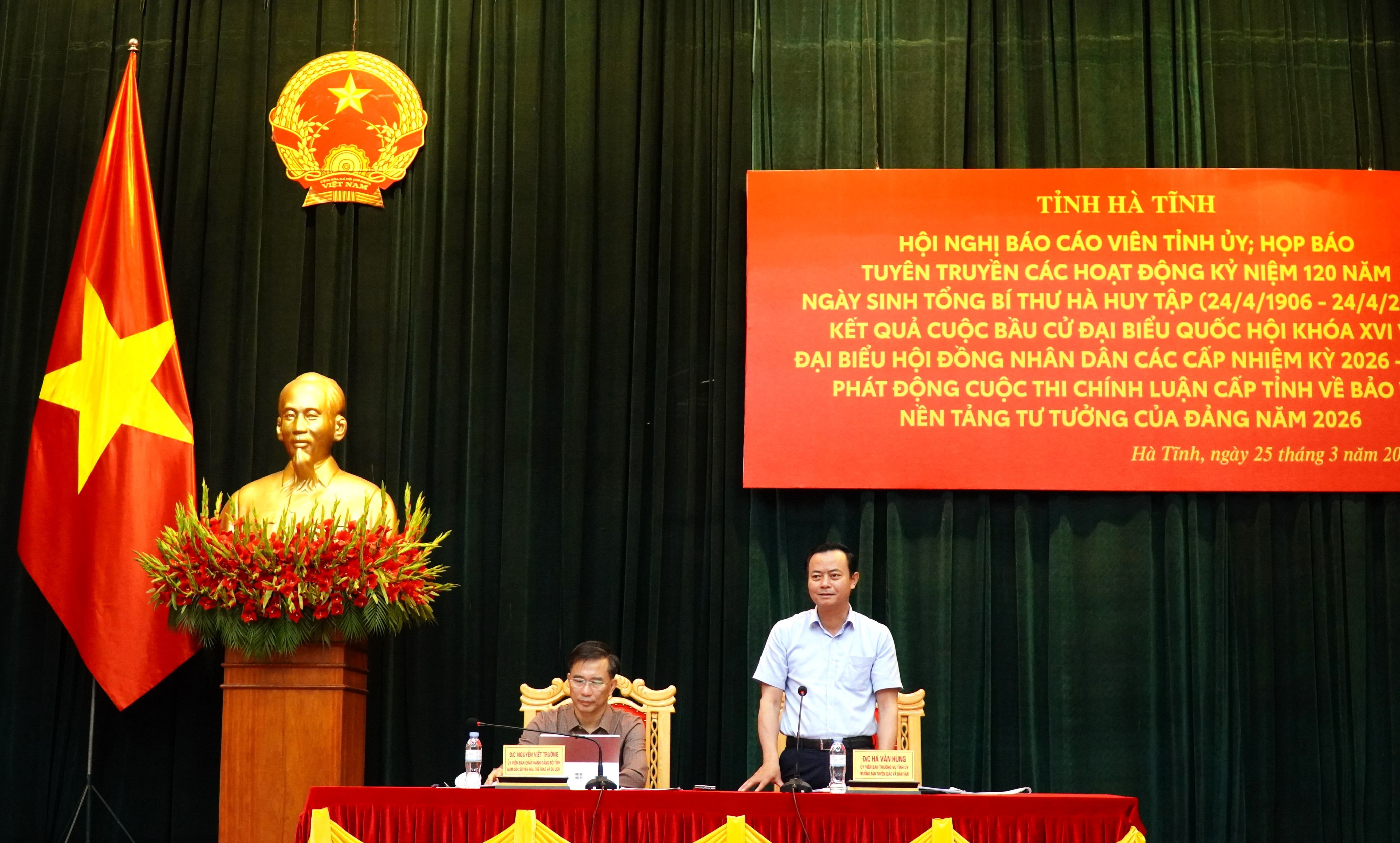 Trưởng Ban Tuyên giáo và Dân vận Tỉnh ủy tỉnh Hà Tĩnh Hà Văn Hùng, Giám đốc Sở VH-TT-DL Nguyễn Viết Trường chủ trì hội nghị