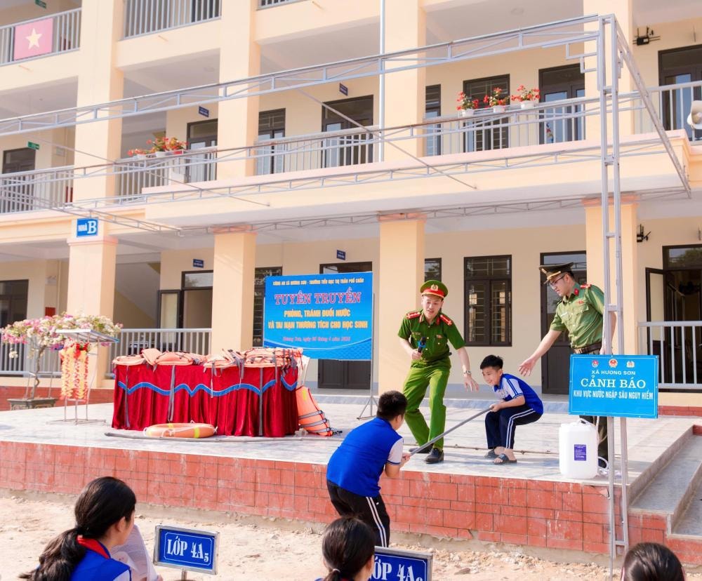 Công an xã Hương Sơn phối hợp với Đoàn xã Hương Sơn tổ chức tuyên truyền kỹ năng phòng, tránh đuối nước và tai nạn thương tích cho giáo viên, nhân viên và học sinh