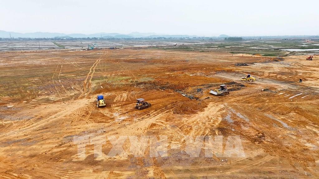 Hạng mục san lấp hiện đạt khối lượng khoảng 30%. Ảnh: Hữu Quyết - TTXVN