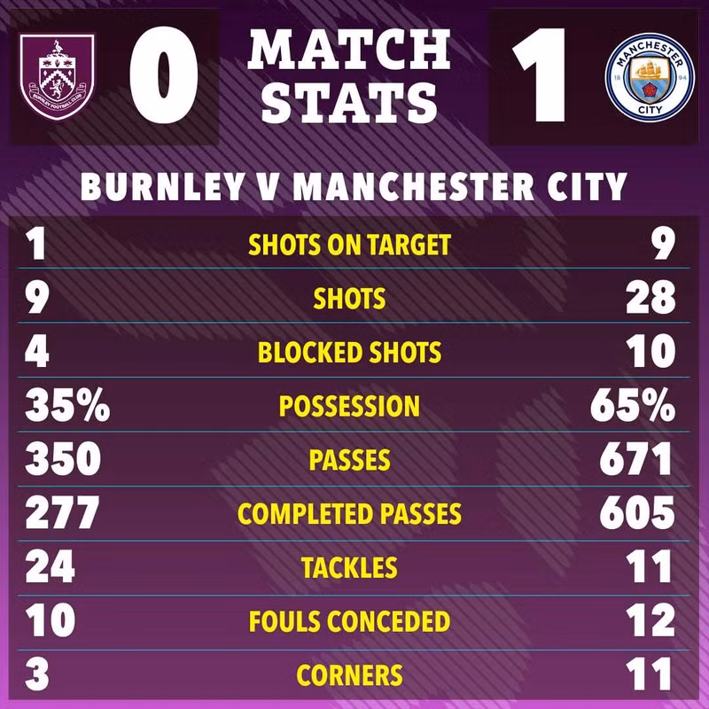 Bên kia chiến tuyến, trận thua khiến Burnley cầm chắc tấm vé xuống hạng mùa sau. Họ hiện đang xếp vị trí 19 với vỏn vẹn 20 điểm, kém vị trí an toàn 13 điểm trong khi giải chỉ còn 4 vòng đấu nữa sẽ hạ màn.