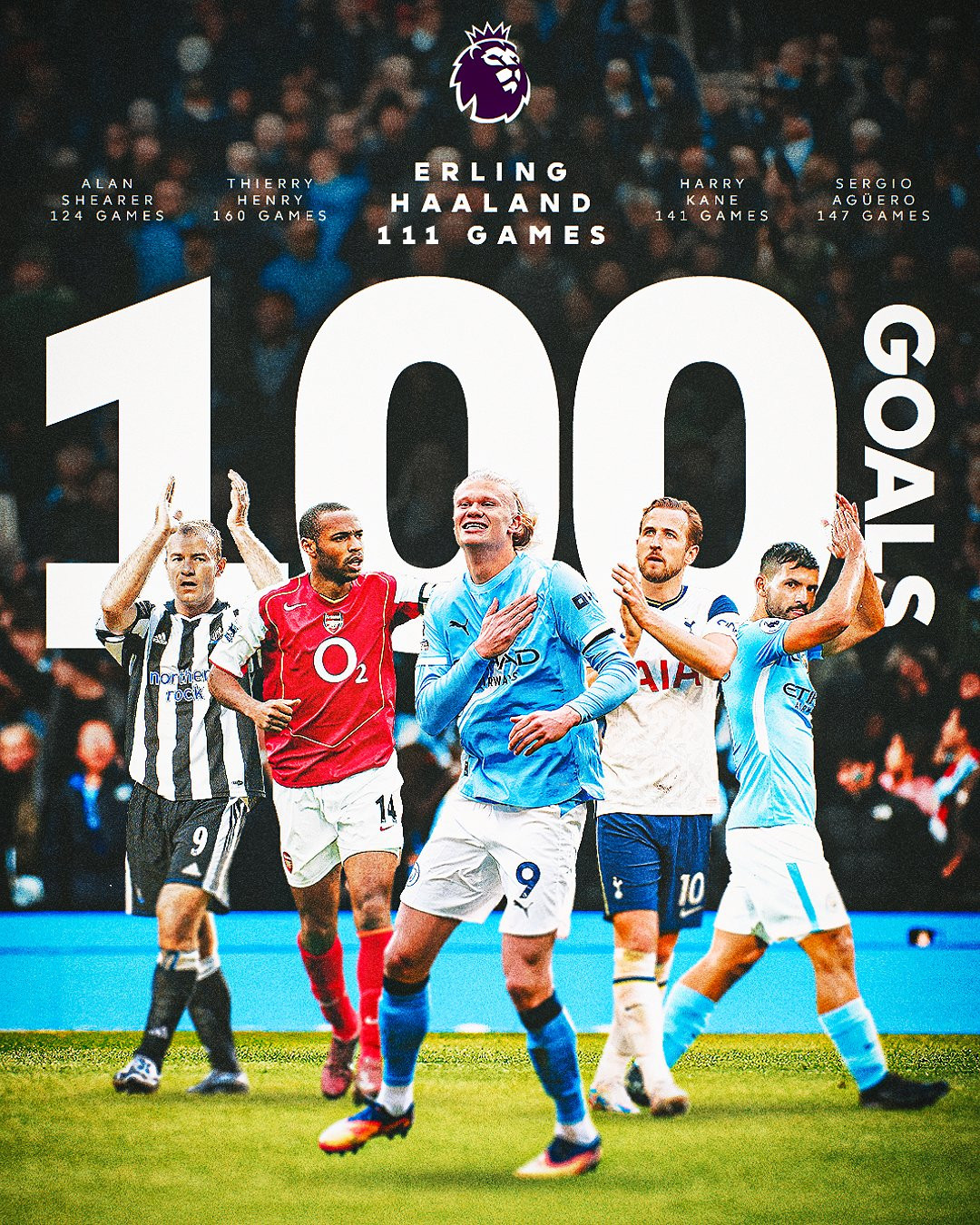 Đây cũng là bàn thắng thứ 100 của Haaland tại Ngoại hạng Anh. Anh lập kỷ lục mới khi chỉ cần 111 trận để đạt được cột mốc đáng nhớ này.