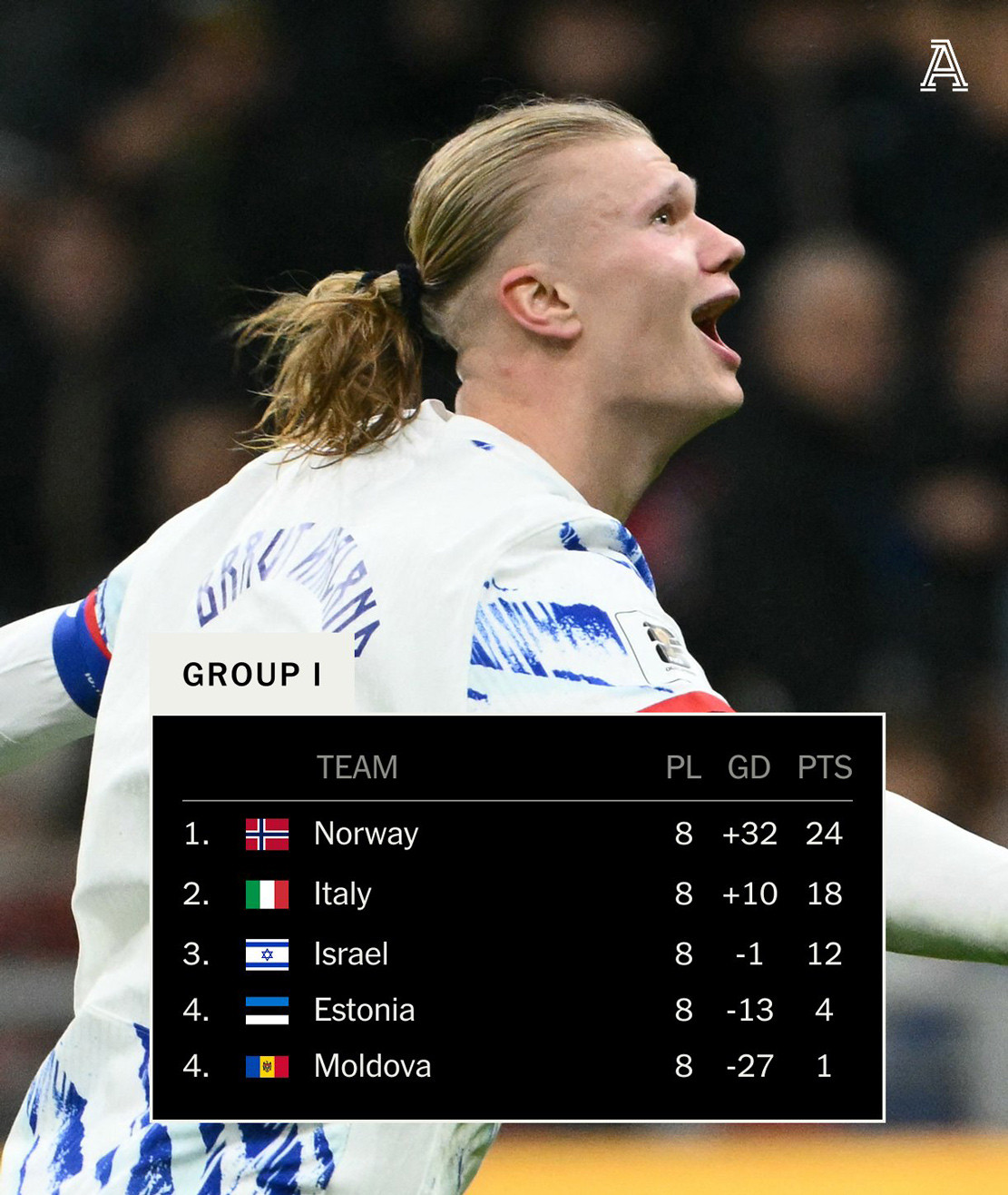 Na Uy thắng cả 8 trận vòng bảng, xếp đầu bảng I, giành vé dự VCK World Cup 2026