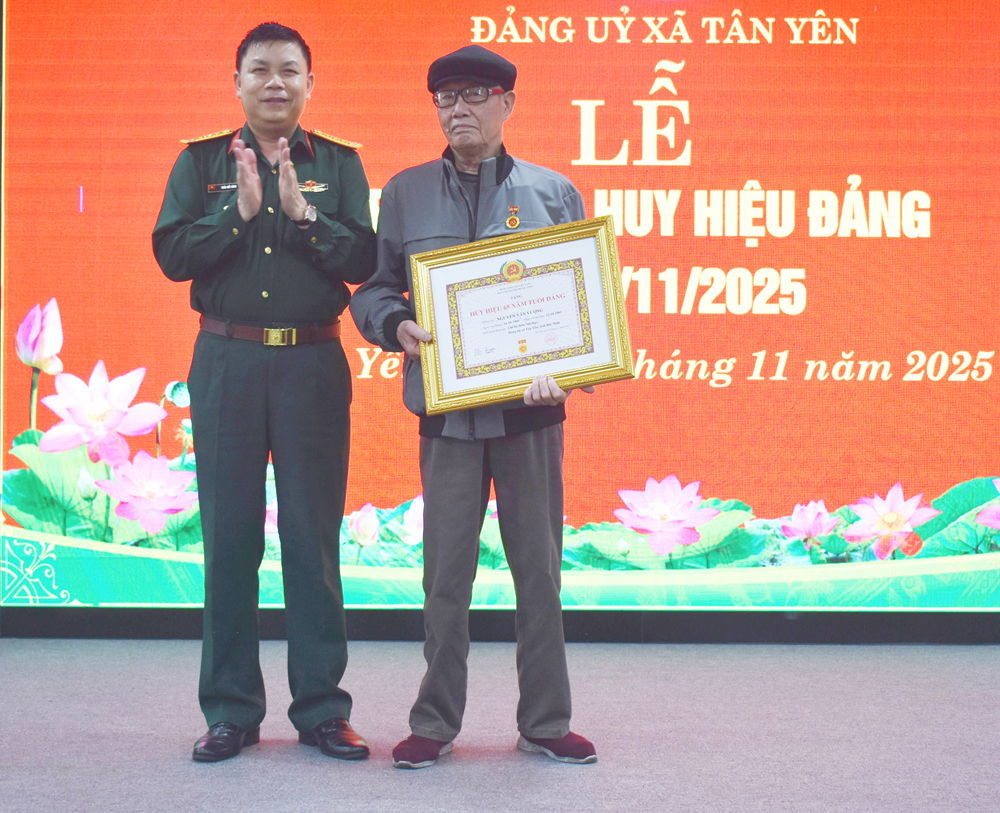 Đúng dịp kỷ niệm 108 năm Cách mạng Tháng Mười Nga (7/11/2025), hai anh em cụ Nguyễn Văn Bát và Nguyễn Văn Vượng cùng vinh dự được trao tặng Huy hiệu 80 năm và 65 năm tuổi Đảng. Buổi lễ diễn ra trang trọng, ấm áp, là niềm vui chung của Đảng bộ, chính quyền và Nhân dân xã Tân Yên. Lãnh đạo địa phương khẳng định, các đảng viên cao tuổi, đặc biệt là những đảng viên có nhiều năm tuổi Đảng như hai cụ chính là “vốn quý” của Đảng bộ - những nhân chứng sống cho lịch sử vẻ vang của Đảng và dân tộc. Dù tuổi cao, sức khỏe có hạn, song trong niềm xúc động khi đón nhận phần thưởng cao quý của Đảng, hai cụ vẫn bày tỏ quyết tâm tiếp tục giữ vững phẩm chất người đảng viên, nêu gương sáng cho con cháu và cộng đồng.