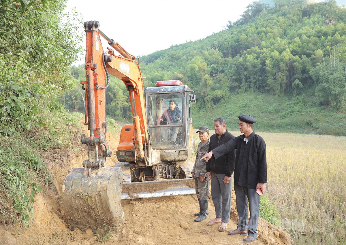 Đồng chí Mã Phúc Hương, Bí thư Chi bộ thôn Làng Hản, Đảng bộ xã Tân Trào, vận động Nhân dân hiến đất mở rộng đường giao thông nội đồng.