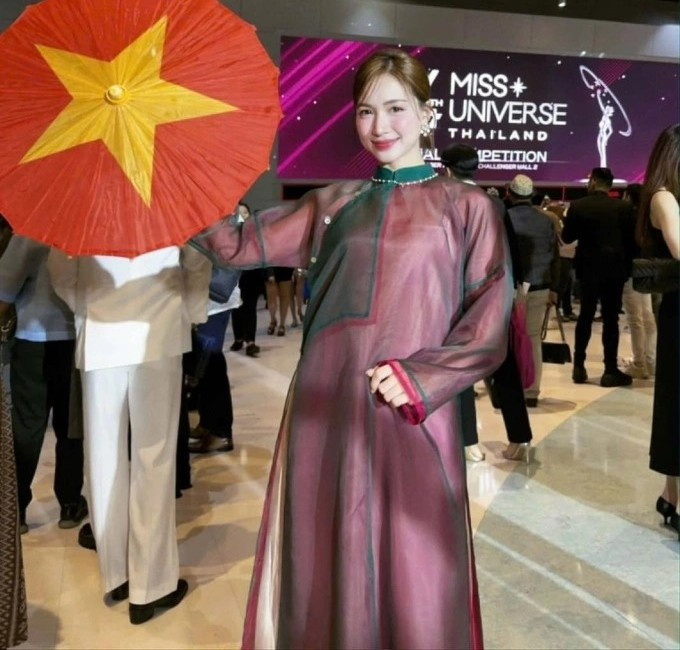 Tại chung kết Miss Universe 2025 tại Thái Lan, Hòa Minzy xuất hiện để cổ vũ đại diện Việt Nam Hương Giang với bộ áo dài cách tân từ thương hiệu Việt Nam DINGDANG. Thiết kế mang tên Diệp Vân này được xây dựng theo cấu trúc ba lớp tinh tế, tạo hiệu ứng gradient màu sắc tự nhiên. Lớp trong cùng là áo hai dây màu kem, lớp giữa sử dụng chất liệu tơ màu hồng cánh sen, và lớp ngoài là tơ xanh lá mỏng nhẹ, mang lại vẻ bay bổng, thanh thoát.