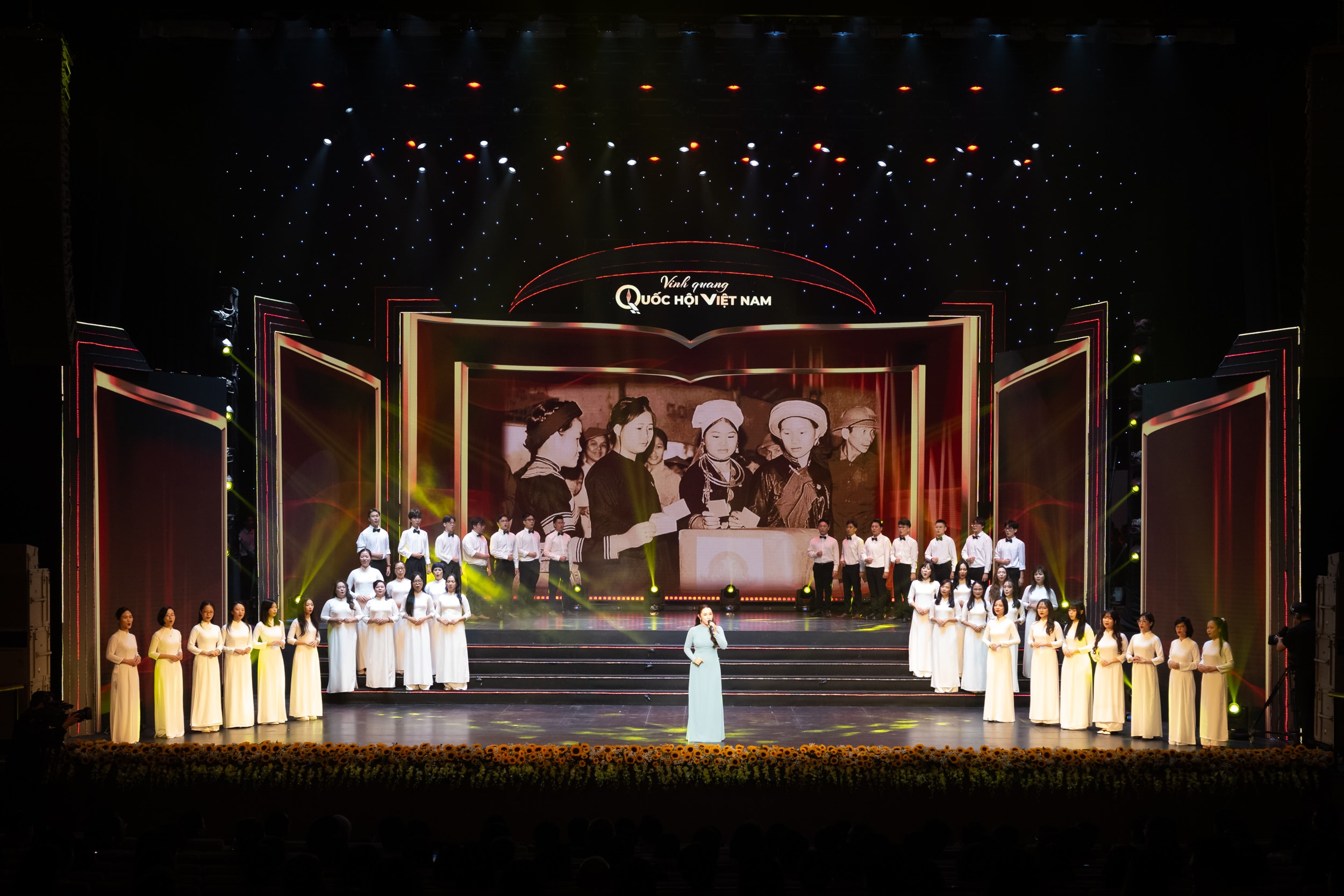 Ca khúc “Ngày Quốc hội” do ca sĩ Bảo Trâm và tốp ca thể hiện. Ảnh: Phạm Thắng