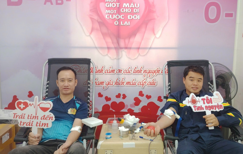 Thượng úy Lương Hồng Thái, Bí thư Chi đoàn Phòng Cảnh sát hình sự và Trung sĩ Đinh Đức Nam, đoàn viên Chi đoàn Phòng Cảnh sát Phòng cháy chữa cháy và Cứu nạn cứu hộ kịp thời hiến máu cứu người.