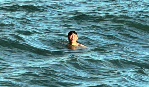 Hình ảnh ông Lê Văn Sanh lúc trôi dạt trên biển. Ảnh: CTV
