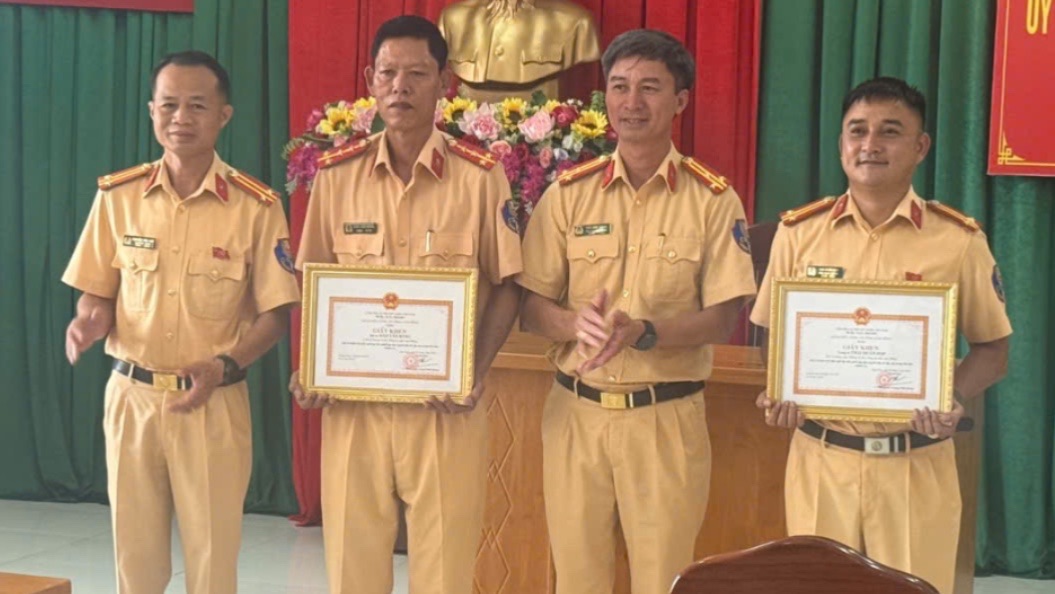 Hai cá nhân được khen thưởng gồm Trung tá Thái Doãn Hợp, Phó Trưởng trạm Trạm CSGT Mađaguôi và Đại úy Đào Văn Bằng, cán bộ Trạm CSGT Mađaguôi.