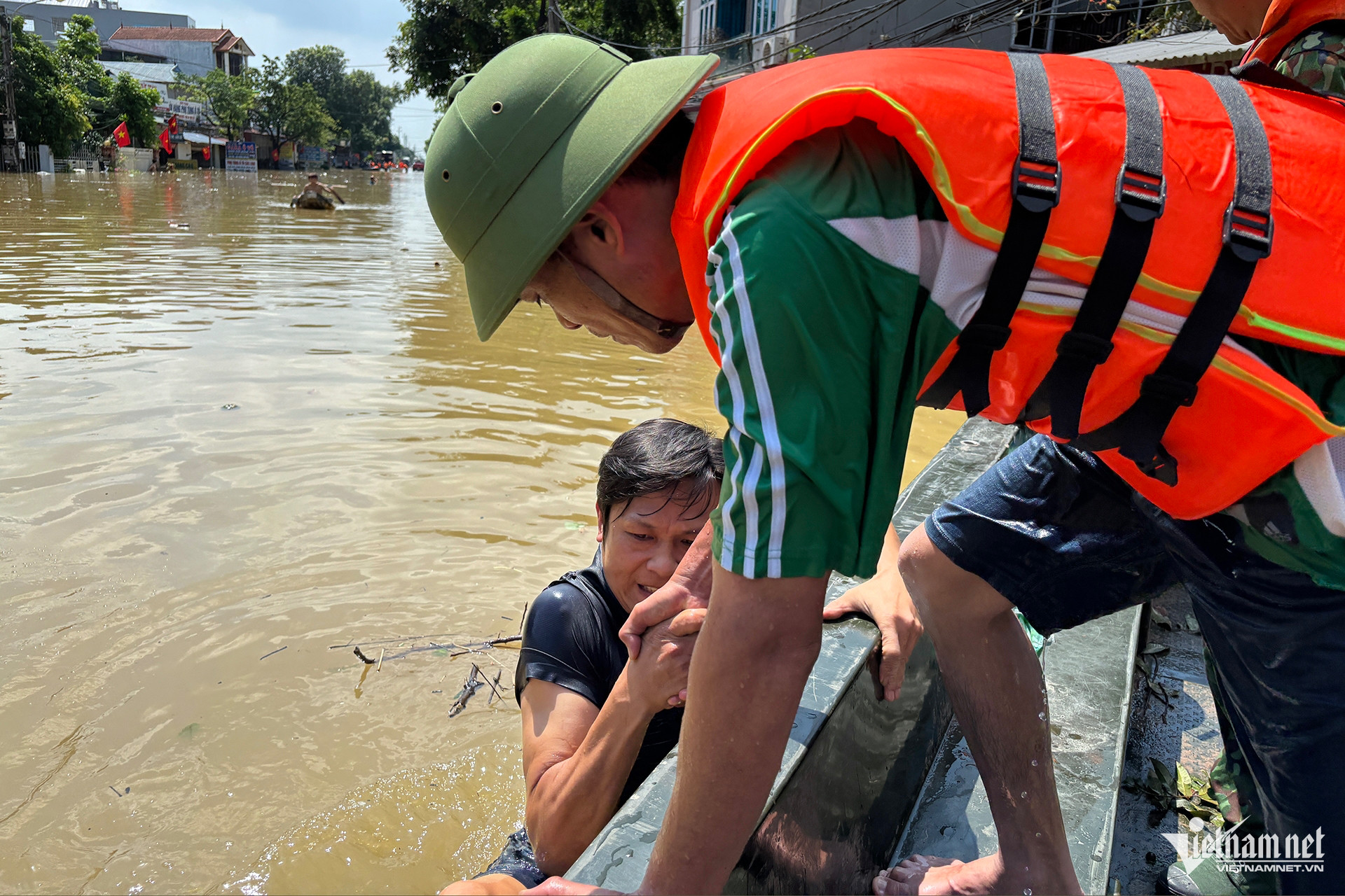 Theo ghi nhận của phóng viên, từ sáng nay, các lực lượng quân đội, công an đã có mặt phối hợp cùng chính quyền xã Trung Giã, Công an xã và Ban Chỉ huy Phòng thủ dân sự xã hỗ trợ người dân di dời tài sản, điều tiết giao thông và đưa người dân qua khu vực ngập sâu.