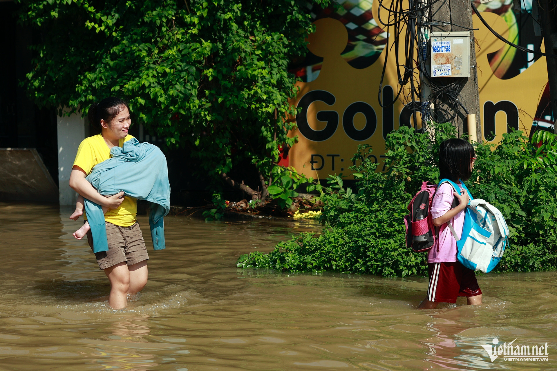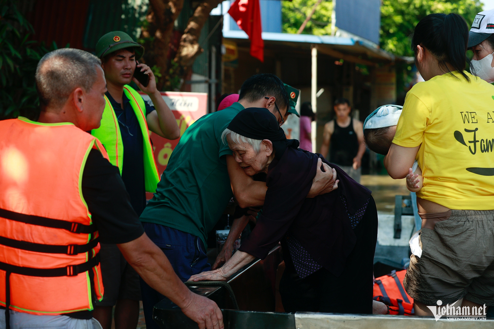 “Có gia đình của cặp vợ chồng với 4 trẻ nhỏ và 1 cụ bà đang ốm nặng. Nước dâng cao đột ngột khiến họ loay hoay trở tay không kịp. Nhận được thông tin, 10h30 sáng, đội cứu trợ của thôn đã chèo thuyền đến đón, kịp thời đưa cụ bà đến Bệnh viện đa khoa Sóc Sơn cấp cứu”, ông Thống chia sẻ.