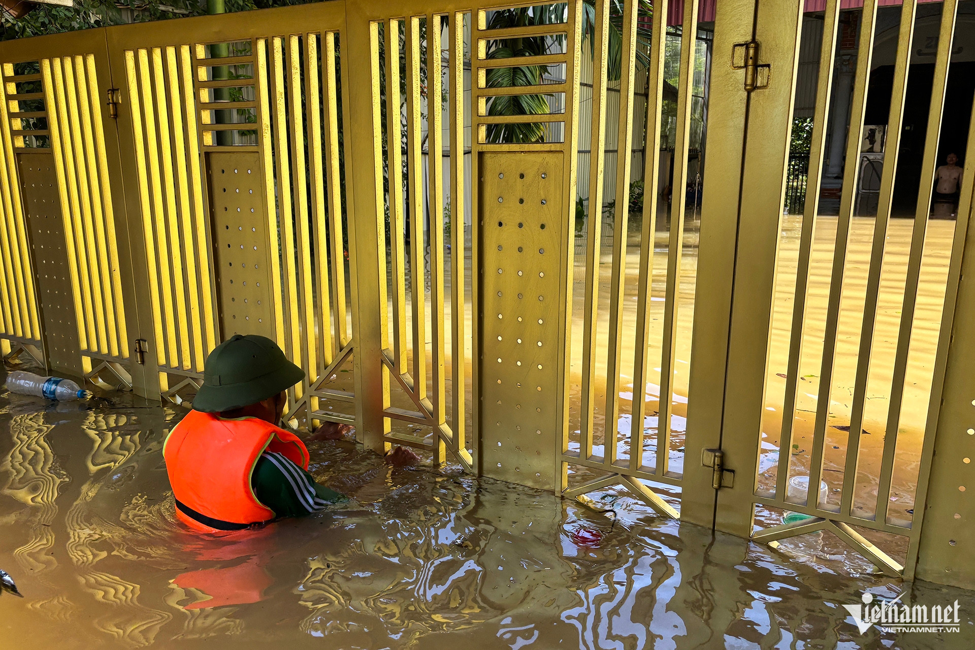 Chiều 9/10, theo ghi nhận của phóng viên tại thôn Xuân Sơn, xã Trung Giã, nhiều điểm nước ngập sâu từ 1-2m, thậm chí có điểm sâu tới 2,5m. Quốc lộ 3 bị chia cắt.