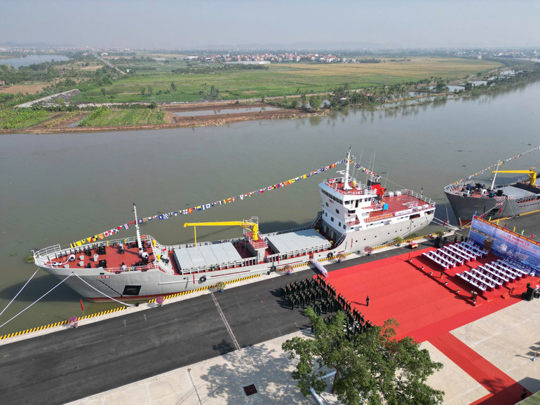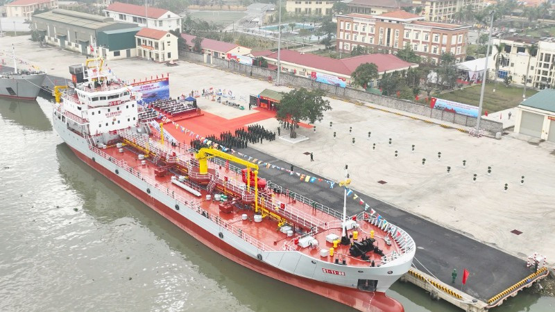Lễ thượng cờ tàu chở xăng dầu 3.000 tấn mang phiên hiệu 51-11-80 tại quân cảng Lữ đoàn 649, Cục Xe máy-Vận tải, Tổng cục Hậu cần-Kỹ thuật.