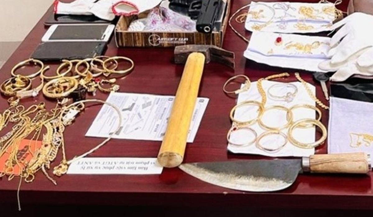 Cơ quan Công an đã thu giữ toàn bộ số tài sản cướp được, gồm: 23 lắc tay vàng, 23 sợi dây chuyền, 38 khuyên tai, 20 nhẫn; 1 xe máy không gắn biển kiểm soát, dao, búa cùng nhiều vật chứng liên quan khác.