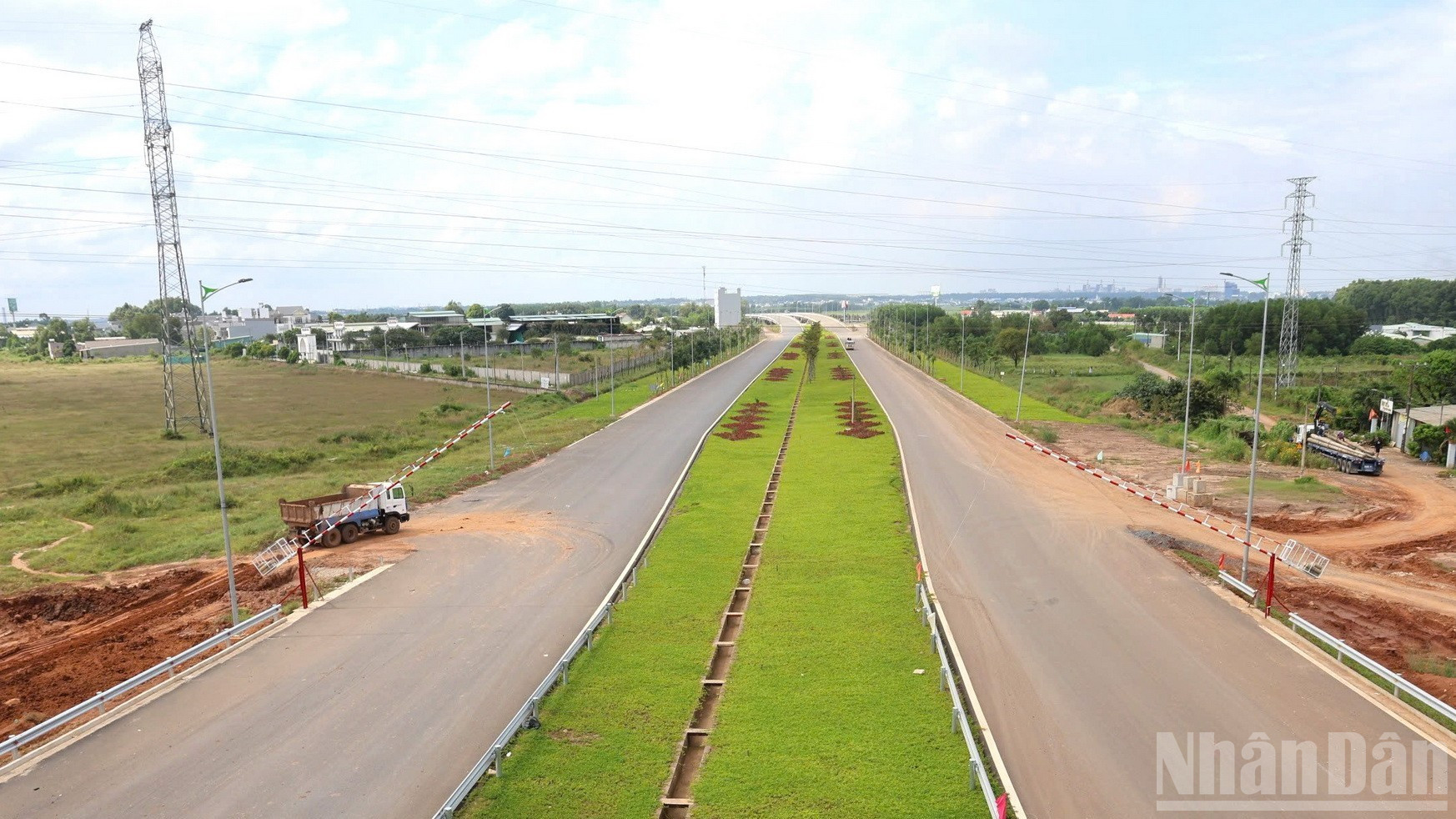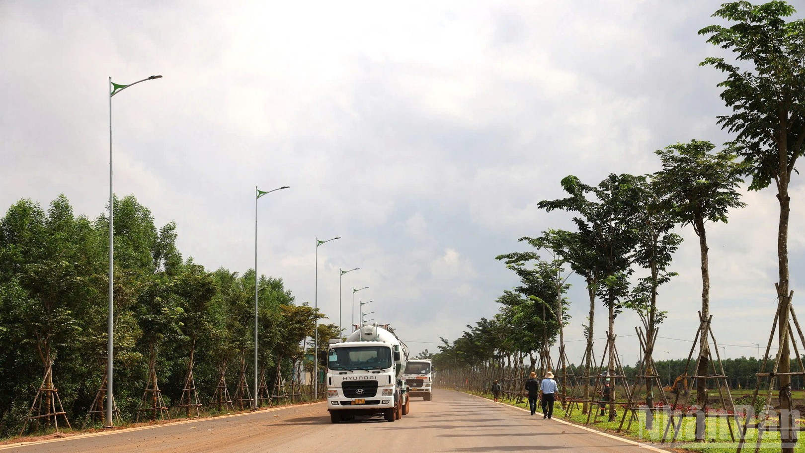 Hiện nay, đường T1 hướng vào sân bay Long Thành đã cơ bản hoàn thiện, cỏ được trồng giữa tuyến tạo không gian xanh.