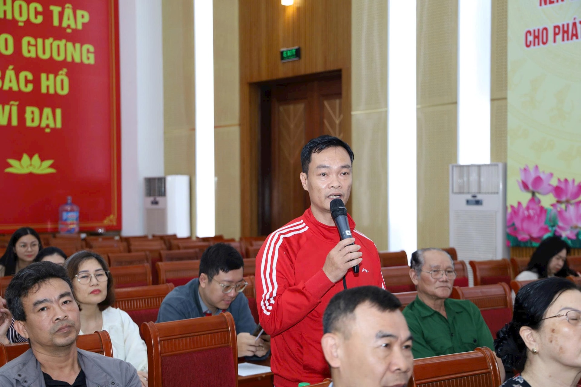 Ông Tăng Tiến Đức (trú tại số 45 Ngọc Hồi) đại diện người dân phát biểu tại cuộc họp. Ảnh: Minh Đức