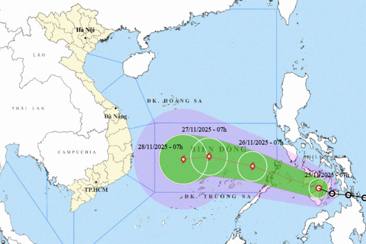 Trung tâm Dự báo khí tượng thủy văn quốc gia cho hay, lúc 7h ngày 25/11, vị trí tâm áp thấp nhiệt đới ở vào khoảng 10,3 độ Vĩ Bắc; 123,1 độ Kinh Đông, trên khu vực miền Trung Philippines. Sức gió mạnh nhất vùng gần tâm áp thấp nhiệt đới mạnh cấp 7 (50-61km/giờ), giật cấp 9, di chuyển theo hướng Tây Tây Bắc với tốc độ 20-25km/h.