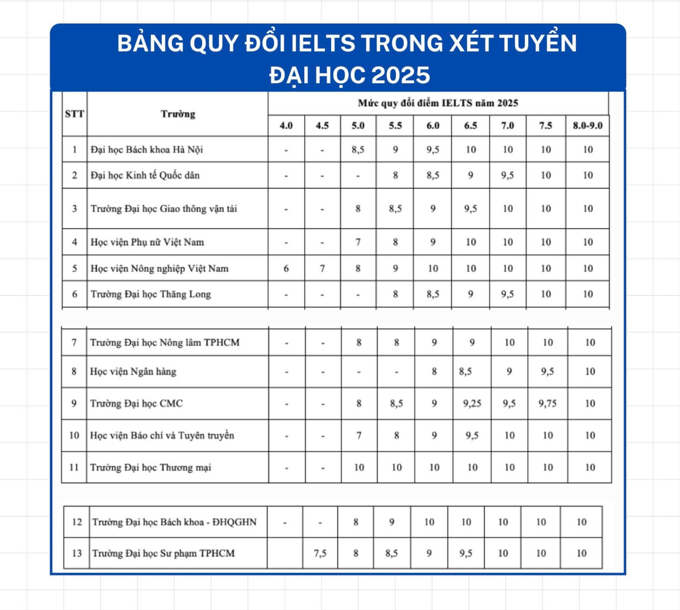 Tại Việt Nam, nhu cầu thi IELTS tăng mạnh trong những năm gần đây. Không chỉ phục vụ mục tiêu du học, chứng chỉ này còn trở thành tiêu chí đầu vào của hàng loạt chương trình đại học. Riêng trong kỳ tuyển sinh 2025 - 2026, ít nhất 40 trường đại học trên cả nước cho phép sử dụng điểm IELTS để xét tuyển kết hợp hoặc cộng điểm khuyến khích.