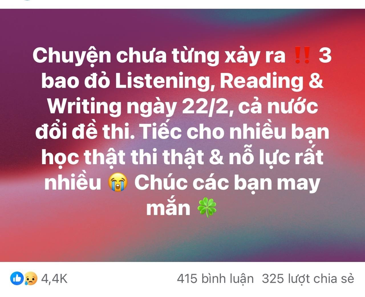 "Không bàn đến hai kỹ năng Viết và Nói vốn phụ thuộc phần nào vào cảm quan giám khảo, nếu ngay cả hai kỹ năng được xem là khách quan nhất như Nghe và Đọc cũng có sai lệch, IELTS sẽ rất khó lấy lại niềm tin của thí sinh," tài khoản này chia sẻ.