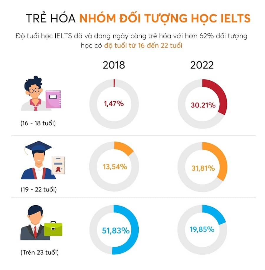 Độ tuổi tham gia học, thi IELTS tại Việt Nam đang có xu hướng trẻ hóa. Ảnh: KTDC.