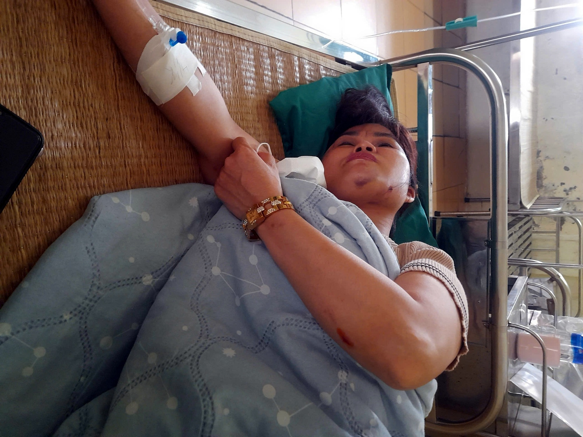 Bà L. đang điều trị tại bệnh viện sau khi bị hành hung.