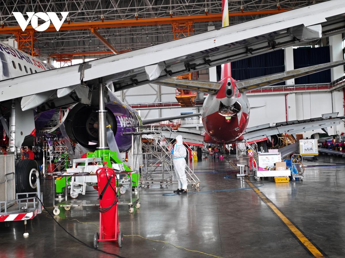 Một góc Cơ sở bảo trì và sửa chữa máy bay tại Cảng hàng không Hải Khẩu - nơi đã có những đơn hàng kiểm tra định kỳ và sơn máy bay đầu tiên vào cảng thương mại tự do đến từ các nước như Việt Nam, Thái Lan, Hàn Quốc...
