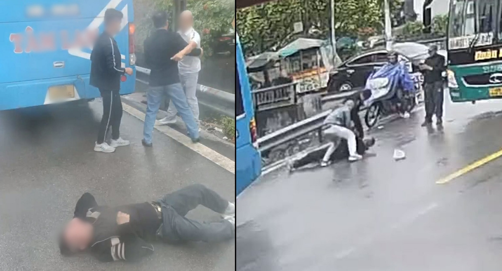 Nội dung trong clip cho thấy, một người đàn ông mặc bộ quần áo sáng màu đứng trước cửa lên xuống của một chiếc xe khách, lời qua tiếng lại với người trên xe. Sau khi người mặc bộ đồ đen từ trên xe bước xuống, hai bên xảy ra xô xát. Người mặc bộ đồ sáng màu liên tục dùng tay đánh đối phương, khiến cả hai cùng ngã xuống đường.