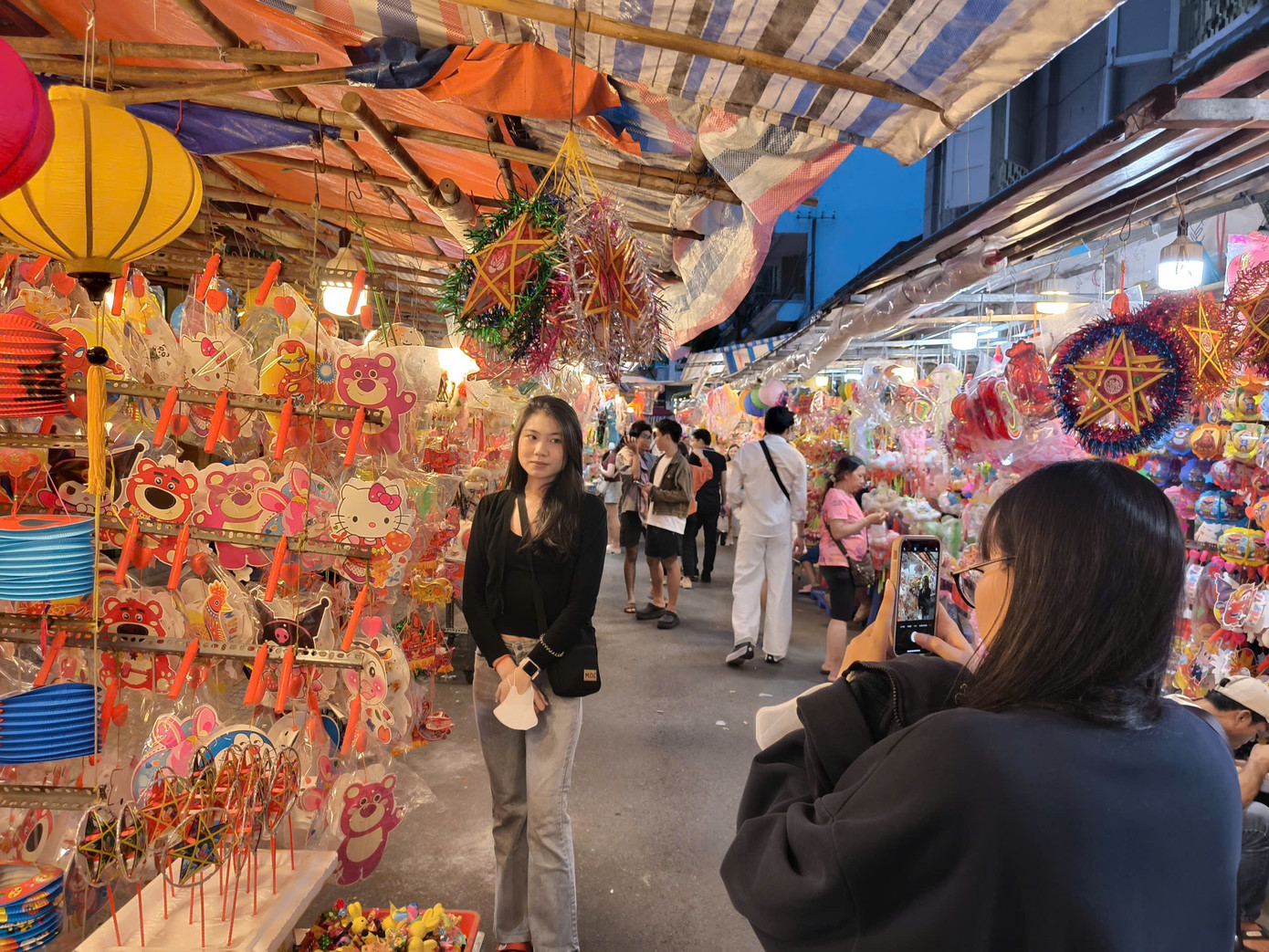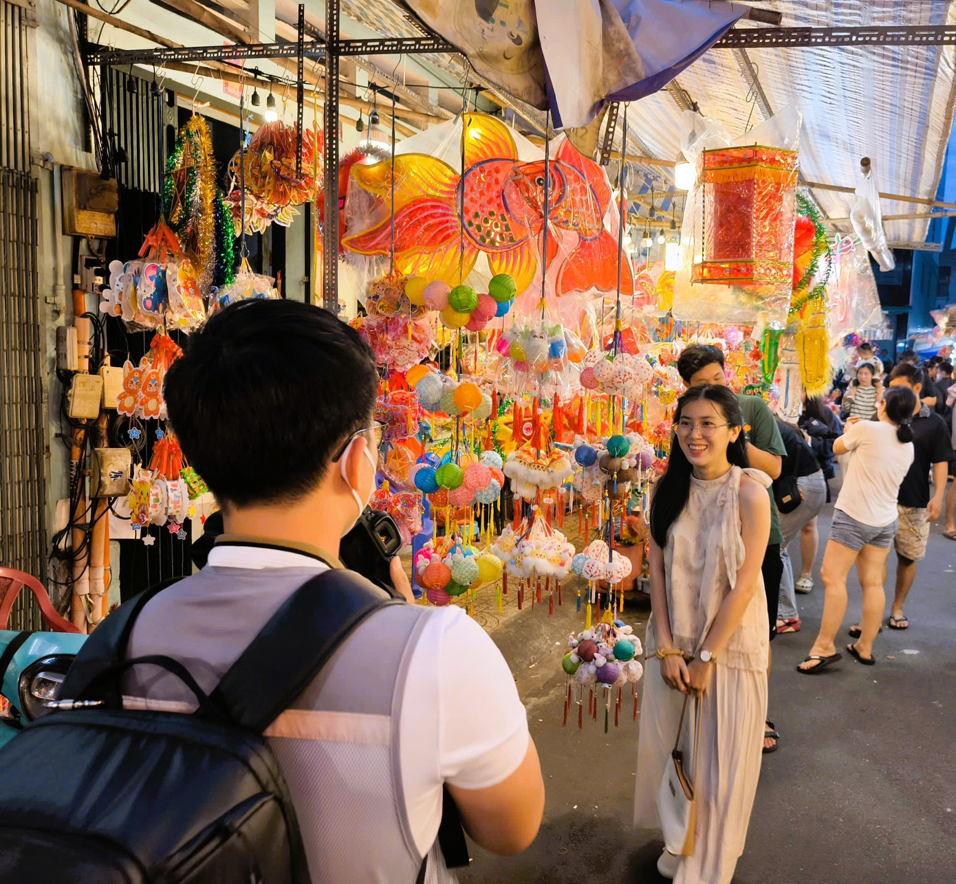 Năm nay, các tiểu thương ở phố lồng đèn này cũng bài trí, tạo khu chụp ảnh riêng để thu hút thêm khách hàng. Nguyễn Huy (phường Phú Lâm) cho biết: “Thay vì phải chen chúc nhau đừng ở trước quầy hàng chụp ảnh như mọi năm. Mình thấy các khu bài trí chụp ảnh cũng tiện hơn cho khách tham quan. Chỉ cần mua lồng đèn ở đó là tha hồ “sống ảo”. Tất nhiên là thời gian chụp cũng phải giới hạn để mọi người không chờ quá lâu”.