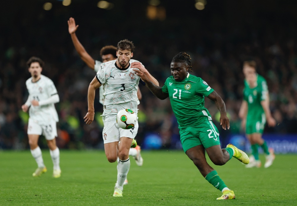 Ruben Dias (trái) trong trận Bồ Đào Nha thua Ireland.