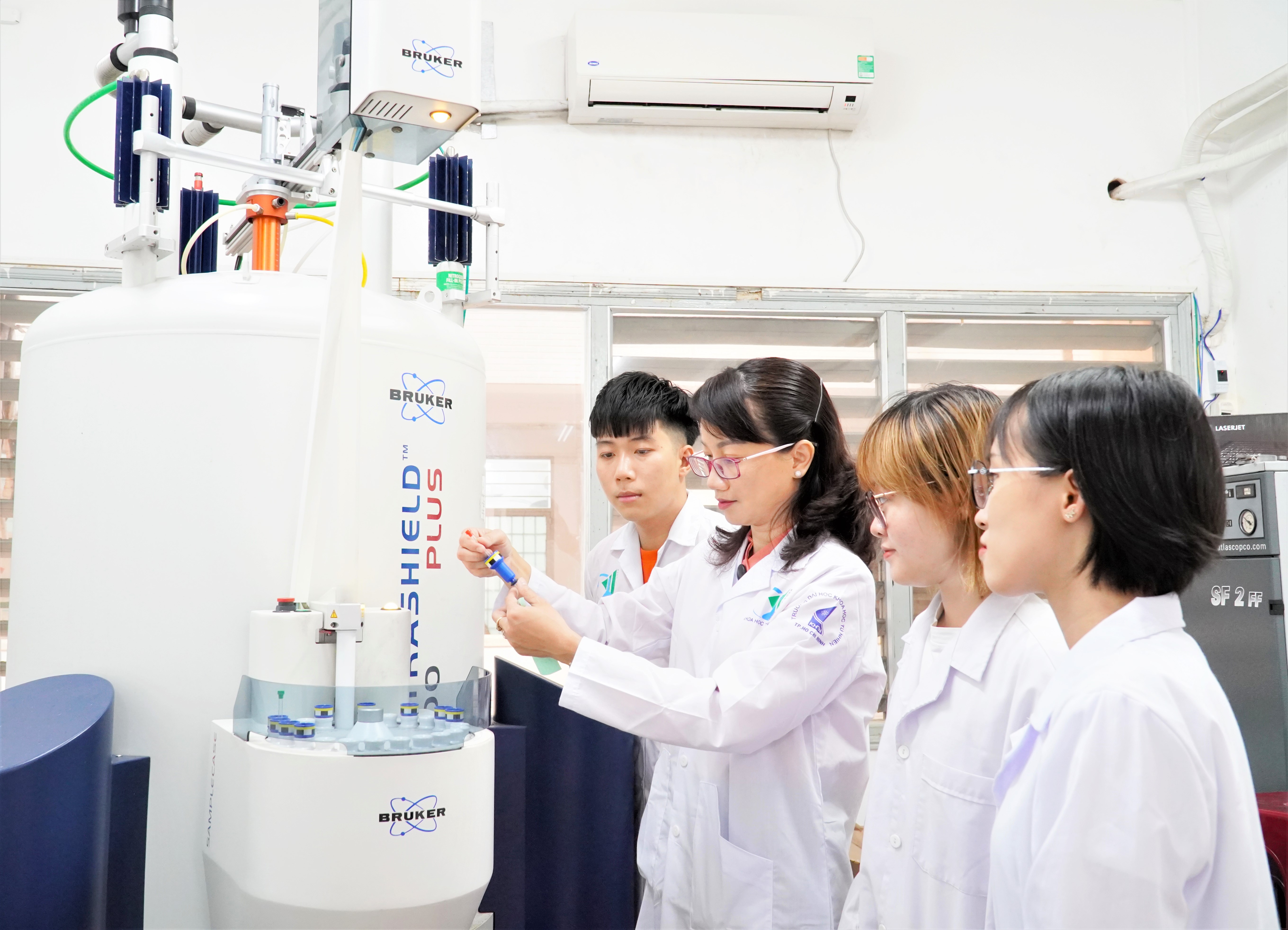 NGƯT-GS-TS Nguyễn Thị Thanh Mai, Phó Giám đốc ĐHQG TPHCM, hướng dẫn sinh viên ngành Hóa học thực hành tại Phòng Phân tích trung tâm của Trường ĐH Khoa học Tự nhiên