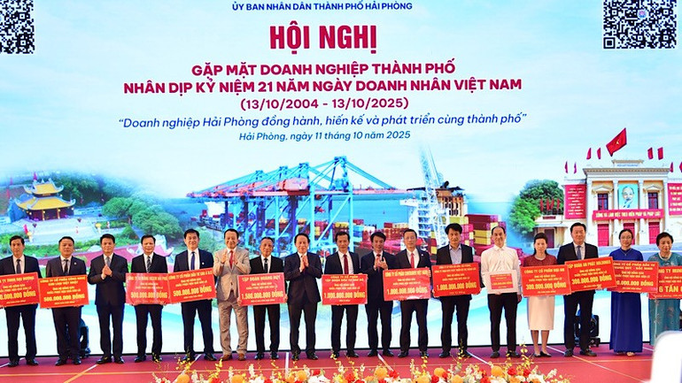 Hưởng ứng sự phát động của thành phố ủng hộ đồng bào bị ảnh hưởng nặng nề bởi lũ lụt, ngay trong buổi gặp mặt, nhiều doanh nghiệp Hải Phòng đã ủng hộ hơn 11 tỷ đồng.