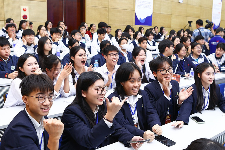 Bà Nguyễn Diệu Hoa, Nhà đồng sáng lập IELTS LangGo hồ hởi nói: “Thời của chúng tôi, những sân chơi, chương trình trí tuệ như thế này không có nhiều. Tôi rất hiểu những áp lực khi học tiếng Anh trong điều kiện thiếu môi trường thực hành. Unlock The IELTS 2025 được triển khai chính là để giúp các bạn học sinh rèn luyện khả năng, vượt qua những rào cản ấy".