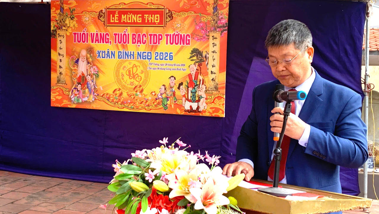 Phát biểu khai mạc, đại diện lãnh đạo Khu dân cư Tường nhấn mạnh, dân tộc Việt Nam từ bao đời nay luôn đề cao đạo hiếu, coi trọng truyền thống “uống nước nhớ nguồn”, “kính lão đắc thọ”. Việc tổ chức mừng thọ đầu xuân không chỉ là hoạt động mang ý nghĩa tinh thần sâu sắc mà còn là dịp để cộng đồng bày tỏ lòng tri ân đối với các bậc cao niên – những người đã dành cả cuộc đời lao động, cống hiến, xây dựng gia đình, quê hương và góp phần gìn giữ những giá trị văn hóa tốt đẹp cho thế hệ mai sau.